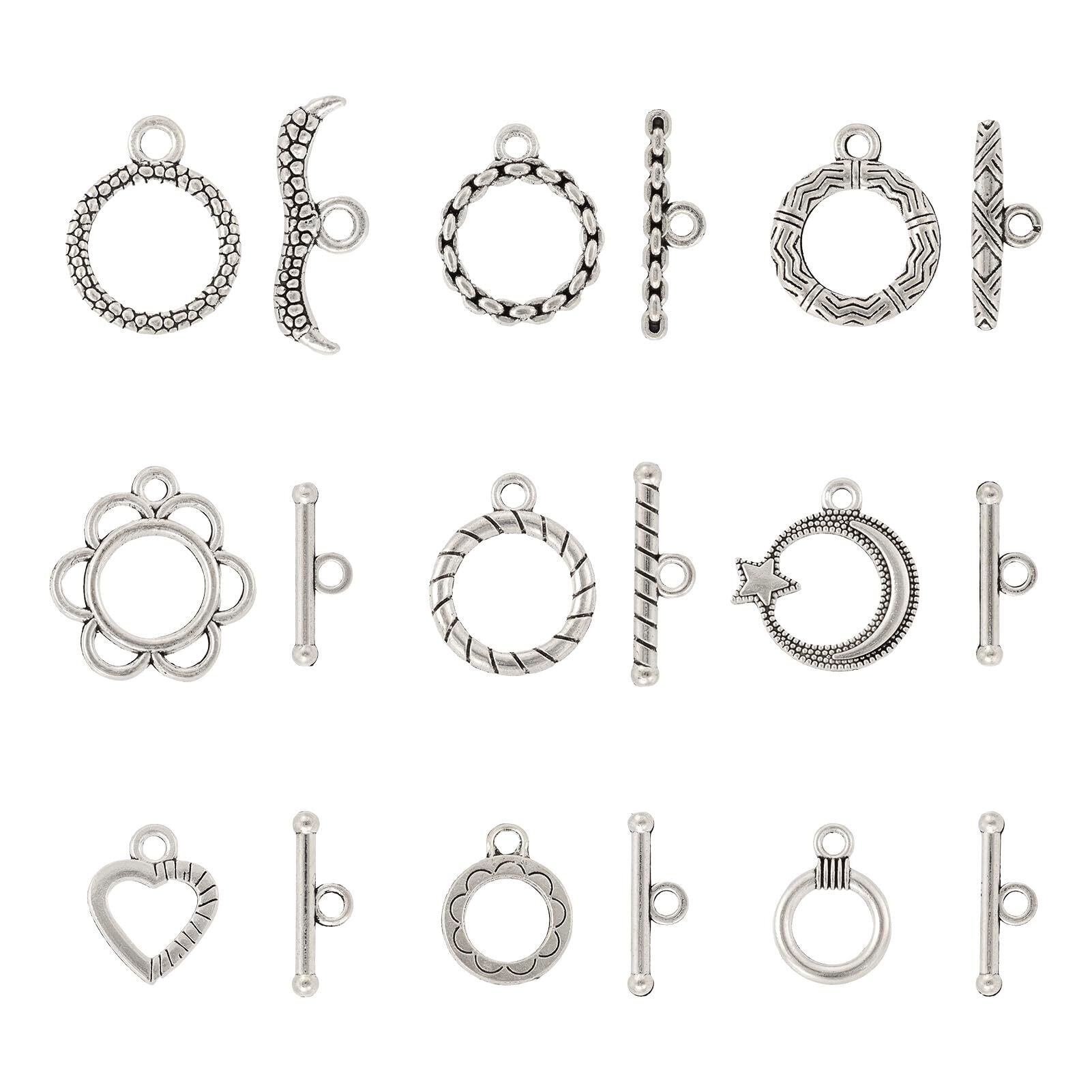 Beadthoven マンテル パーツ マンテルリング クラスプ ヴィンテージ チベットスタイル 接続金具 約54組入り アンティークシルバー 合金製 トグル クラスプ エンドパーツ O字型クラスプ T字型クラスプ リングクラスプ 留め具 ハート型 花形 星月形 丸型 アクセサリーパーツ ネックレス ブレスレッド ジュエリー作成用 DIY ハンドメイド 手芸材料 手作り素材 クラフト用品 | BASE SHOP