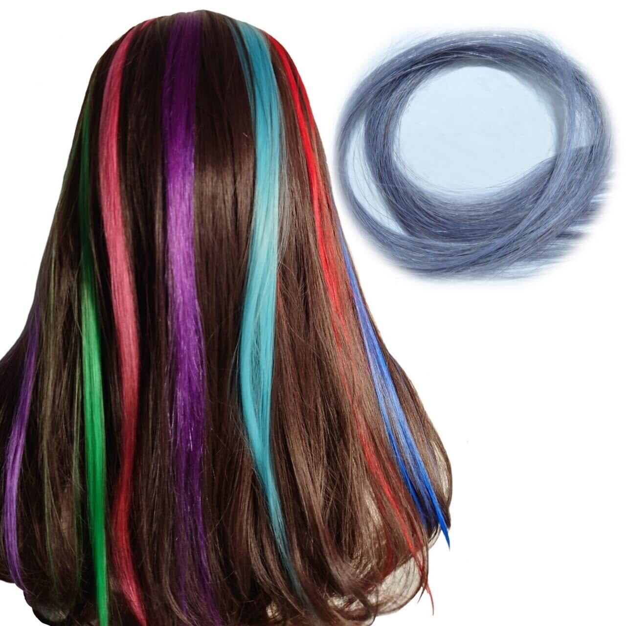 Addnew シールエクステ 人毛 100% 50/60cmセット カラー色々 長持ち エクステ (50cm(3枚入り), アッシュグレー)