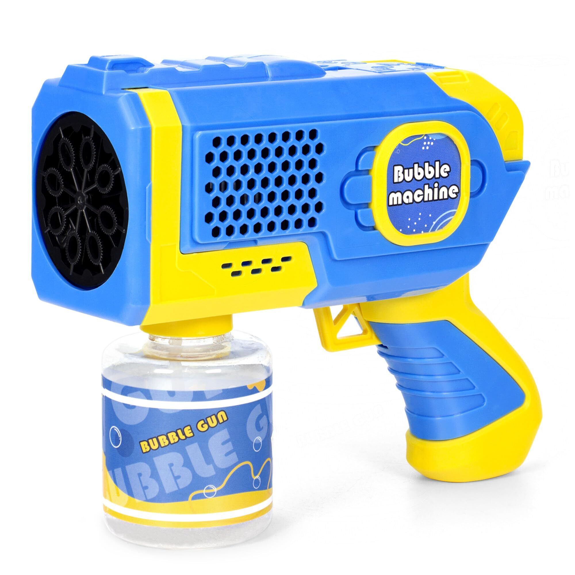 AOMEVOLEO シャボン玉 電動 バズーカ 自動 バブルガン 液漏れ防止 LEDライト付き 子供のおもちゃ 外遊び ピクニック キャンプ 結婚式 誕生日 プレゼント (青)