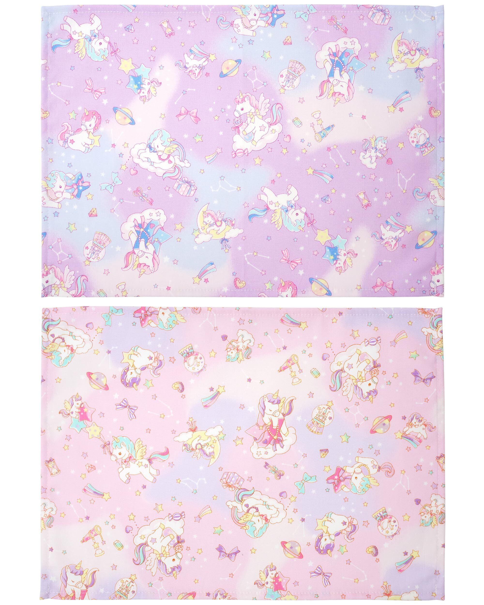 小さめのランチョンマット 2枚セット 25cm 35cm 綿100% 日本製 小 子供 キッズ 女の子 男の子 (ユニコーン(マーブルパープル)&(マーブルピンク))