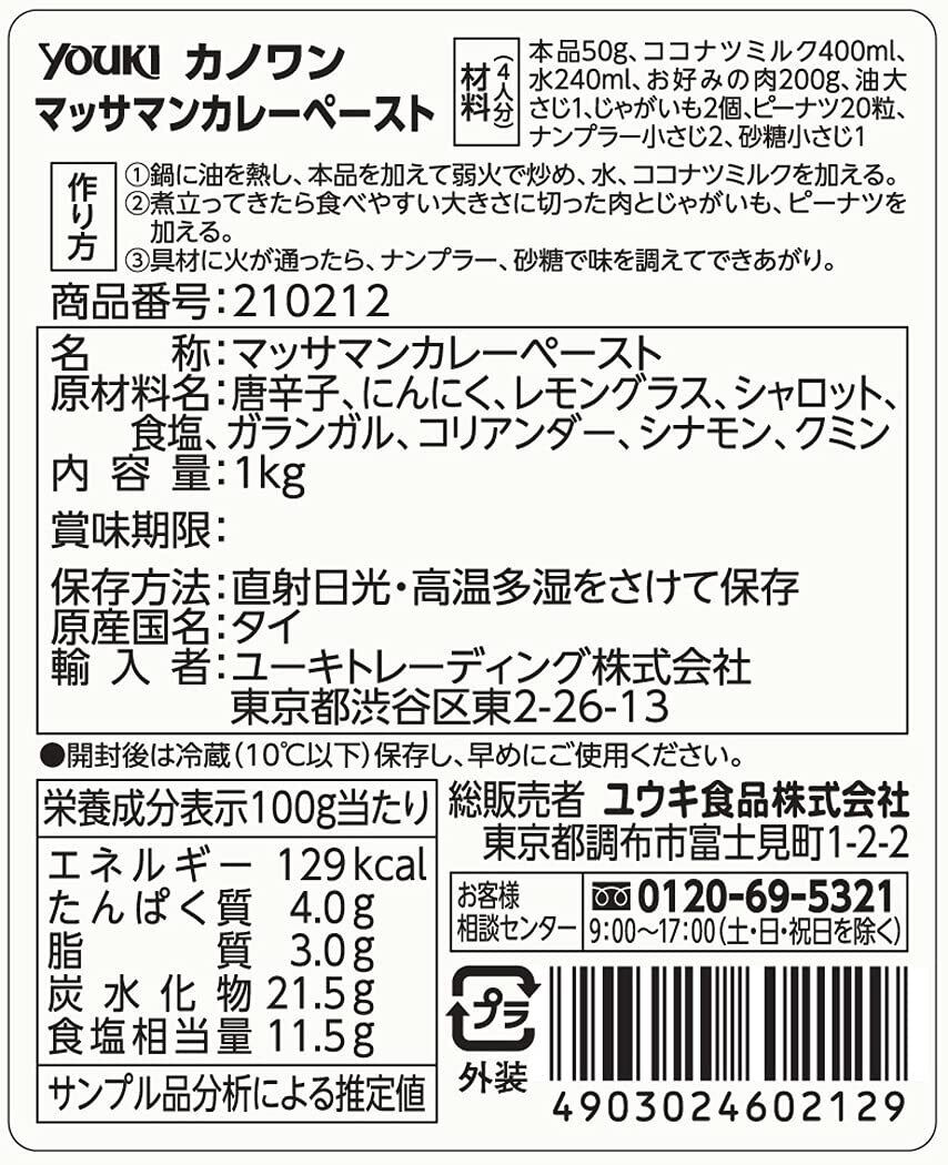 ユウキ食品 Kanokwan マッサマンカレーペースト 1kg (80人分)