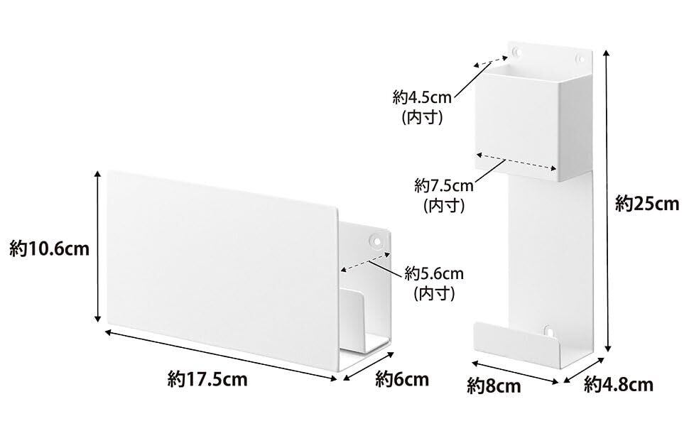 商品サイズ:本体用収納:約W17.5×D6×H10.6cm オプション用収納:約W8×D4.8×H25cm 本体用収納仕切り:約W17.5×D3×H4cm ・内寸:本体用収納:約D5.6cm(仕切り使用時:D2.8cm) オプション用収納(ホルダー部):約W7.5×D4.5cm