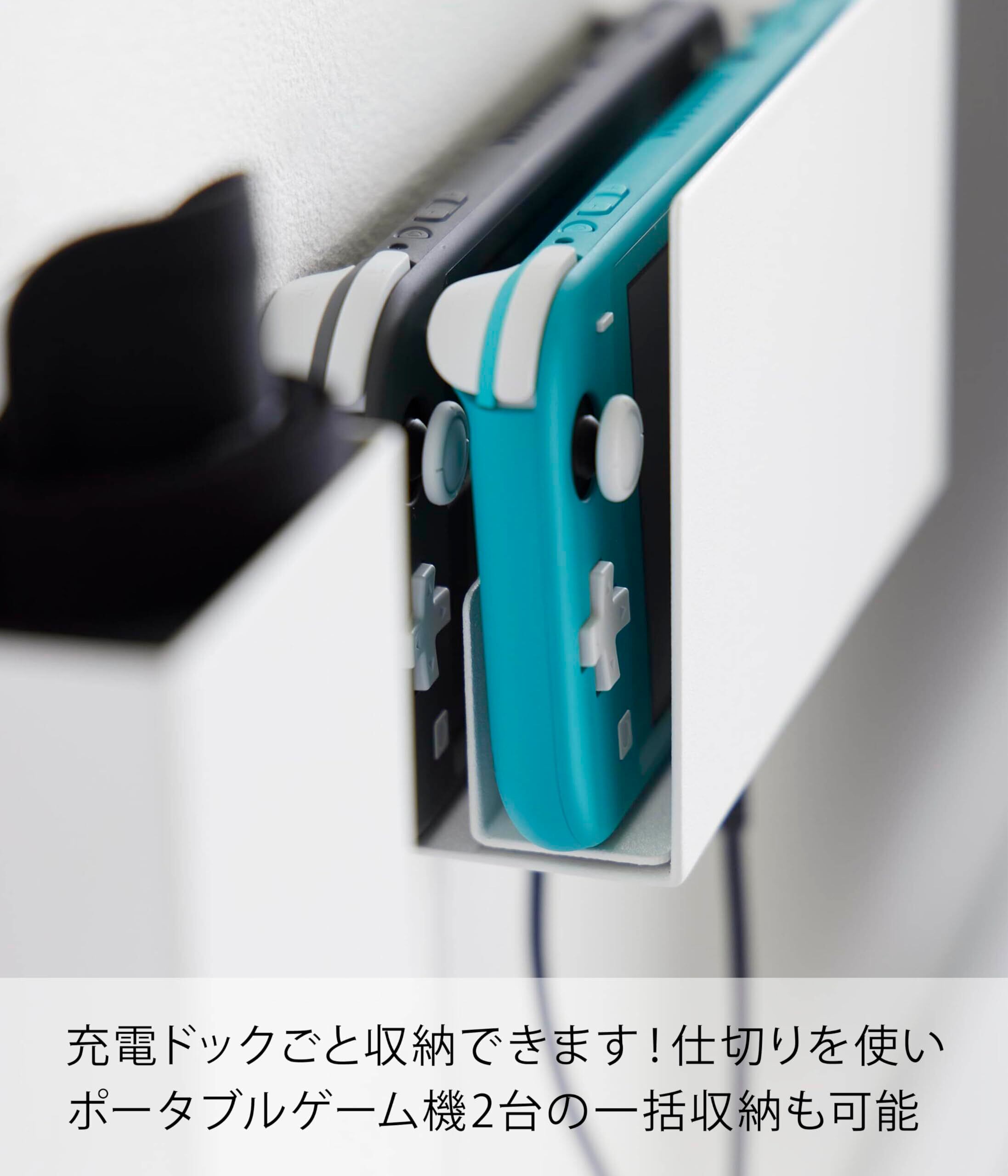 山崎実業(Yamazaki) 【 石こうボードピンセット・木ネジ 付属 】 石こうボード壁対応 充電しながら収納できる ゲーム機収納 ホワイト 本体用収納:約W17.5×D6×H10.6cm スマート smart ゲーム機 コントローラー まとめて収納 整理整頓グッズ 2115 | BASE SHOP