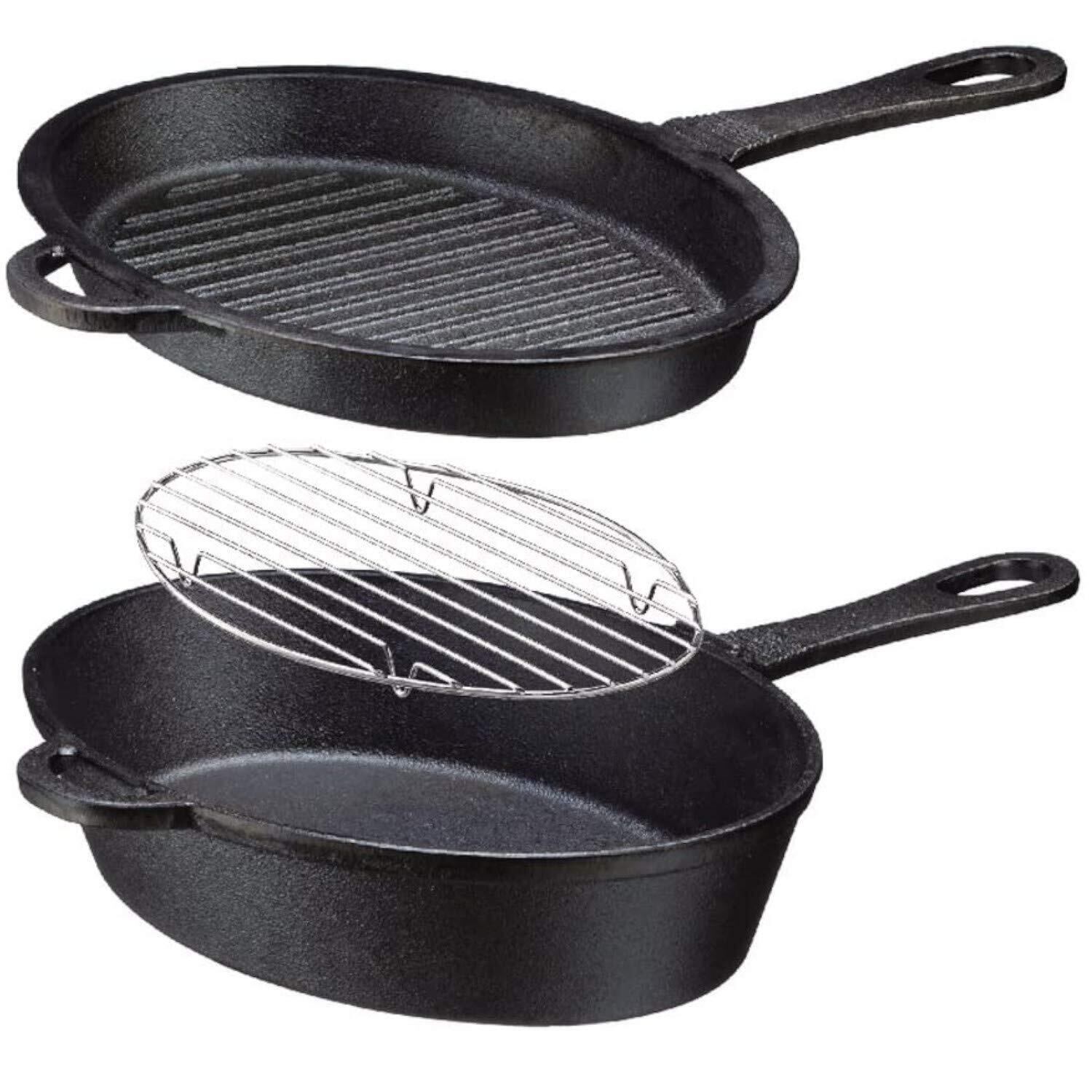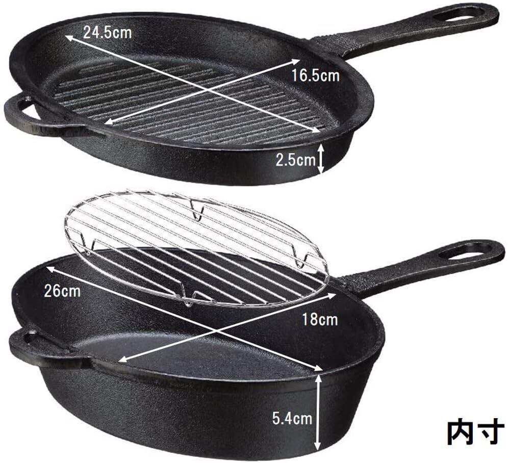 イシガキ スキレット フライパン オーブン 鉄鋳物 オーバル 深型 浅型 セット 網付き
