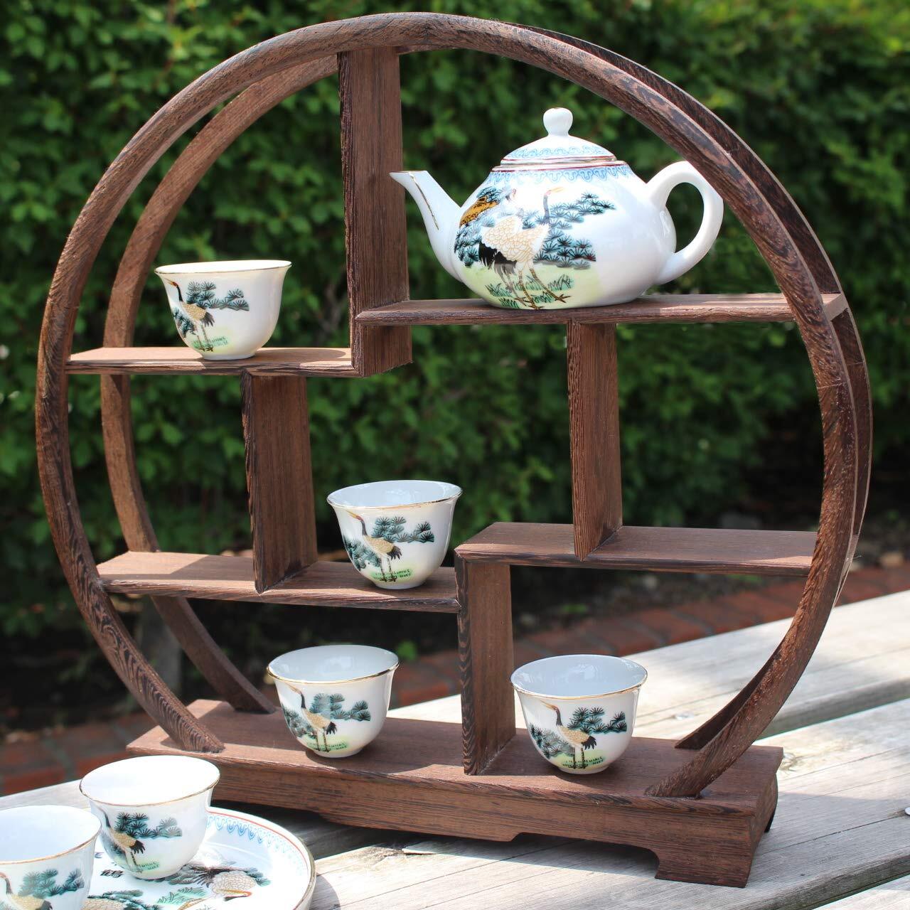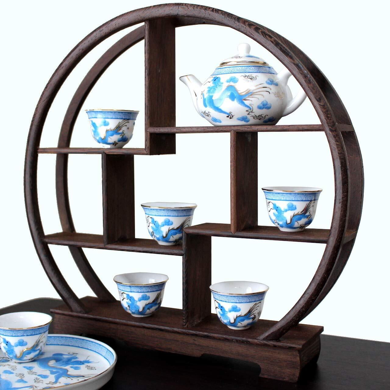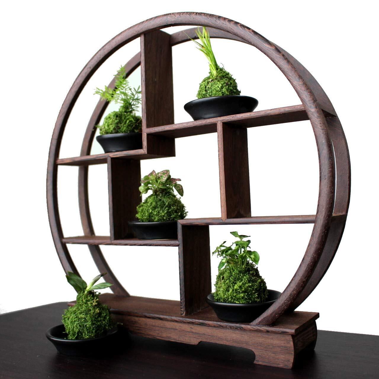 VICHE CATT 中国 茶器 香炉 盆栽 花瓶 台 棚 花台 木製 和風 モダン アンティーク ディスプレイ ウッド ラック 家具 オブジェ (丸型)