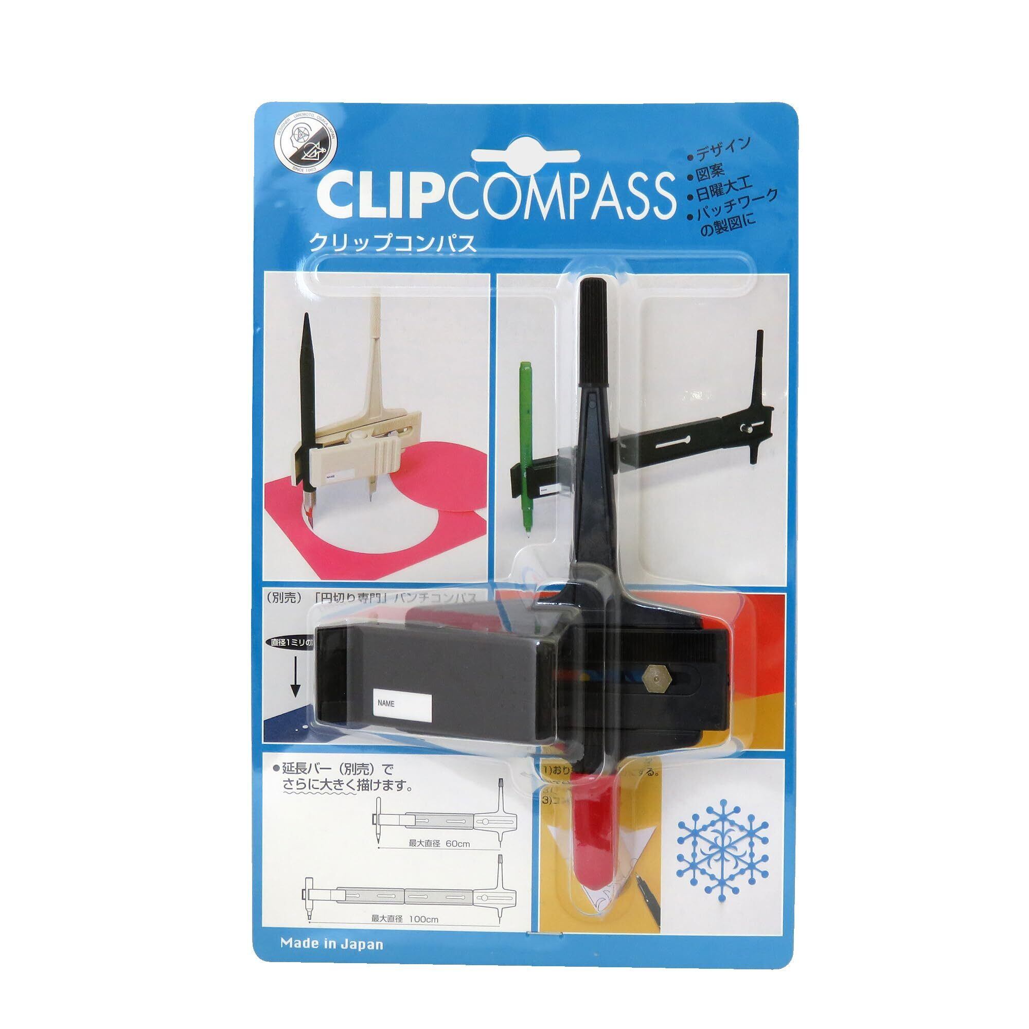 クリップコンパスは単体で最大240mmφまでの円が描けます。30mmφまでの筆記具を挟めます。