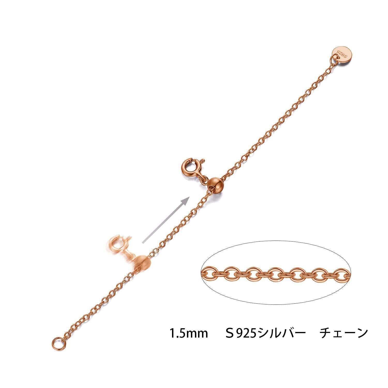 商品説明 仕様:スライド 長さ調節可能 アジャスター チェーン 10cm*1本、クロス1枚 カラー:ピンクゴールド、シルバー、ゴールド 留め具:引き輪