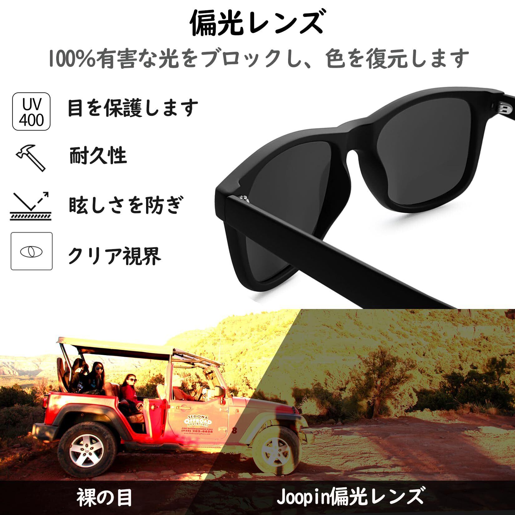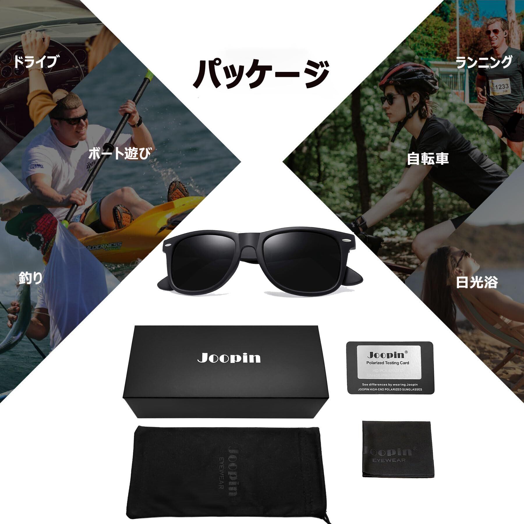 【贈り物にぴったり】セット内容:JOOPINサングラス本体 × 1、布製バッグ × 1、メガネ拭き × 1、偏光テストカード × 1が付属されています。自分用はもちろん、友人、家族、彼女へのプレゼントとしてお勧めします