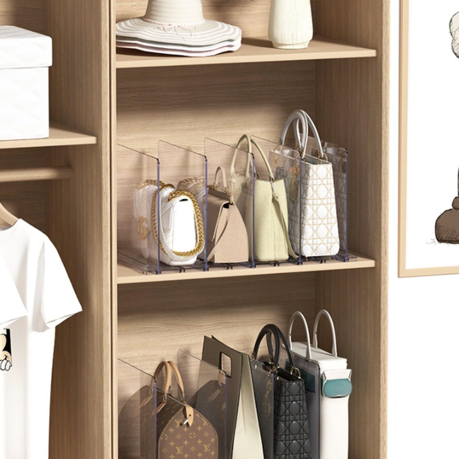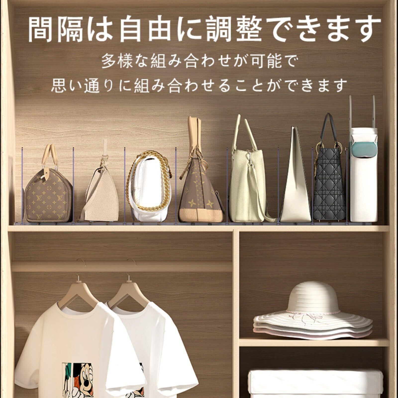 バッグ収納スタンド ホワイト カバン 収納 鞄 収納 仕切りスタンド 約W31.5XD24XH20cm (1組あたり) smart スマート クローゼット収納 調整できる仕切り幅 台座連結可能 収納 便利 (透明(仕切り板 4 枚入り 1 個)) | BASE SHOP