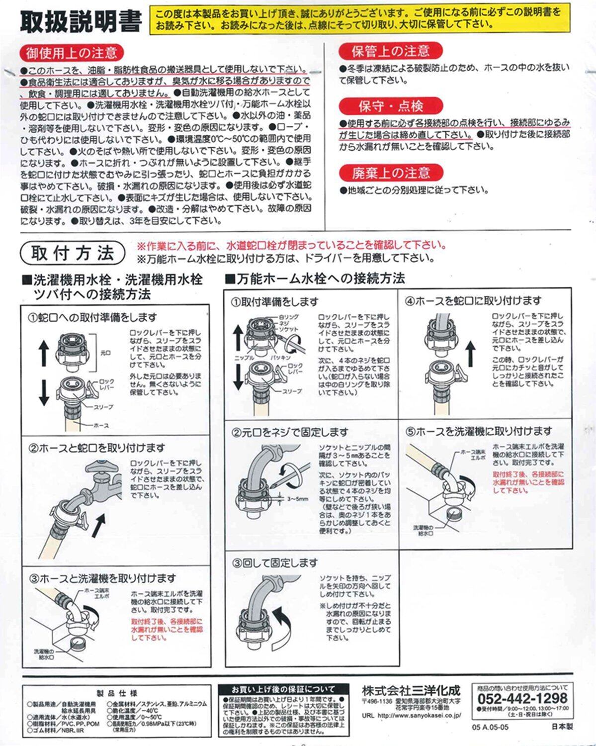 AMZTOP 三洋化成 自動洗濯機用 給水ホース ランラン 1m ホワイト