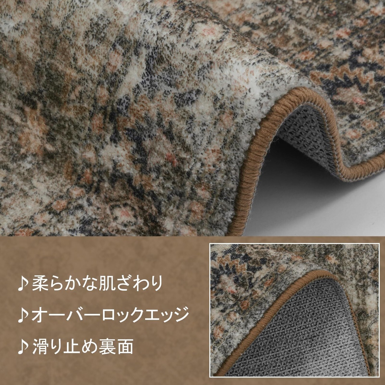 HAOCOO ラグ 洗える 120×160cm オールシーズン適用 ペルシャ風 ラグマット 1.5畳 ふわふわ 滑り止め ホットカーペット対応 防ダニ 防臭 軽量 防音 リビング 寝室 デスクマット ダイニングマット チェアマット アンティーク 花柄 | BASE SHOP
