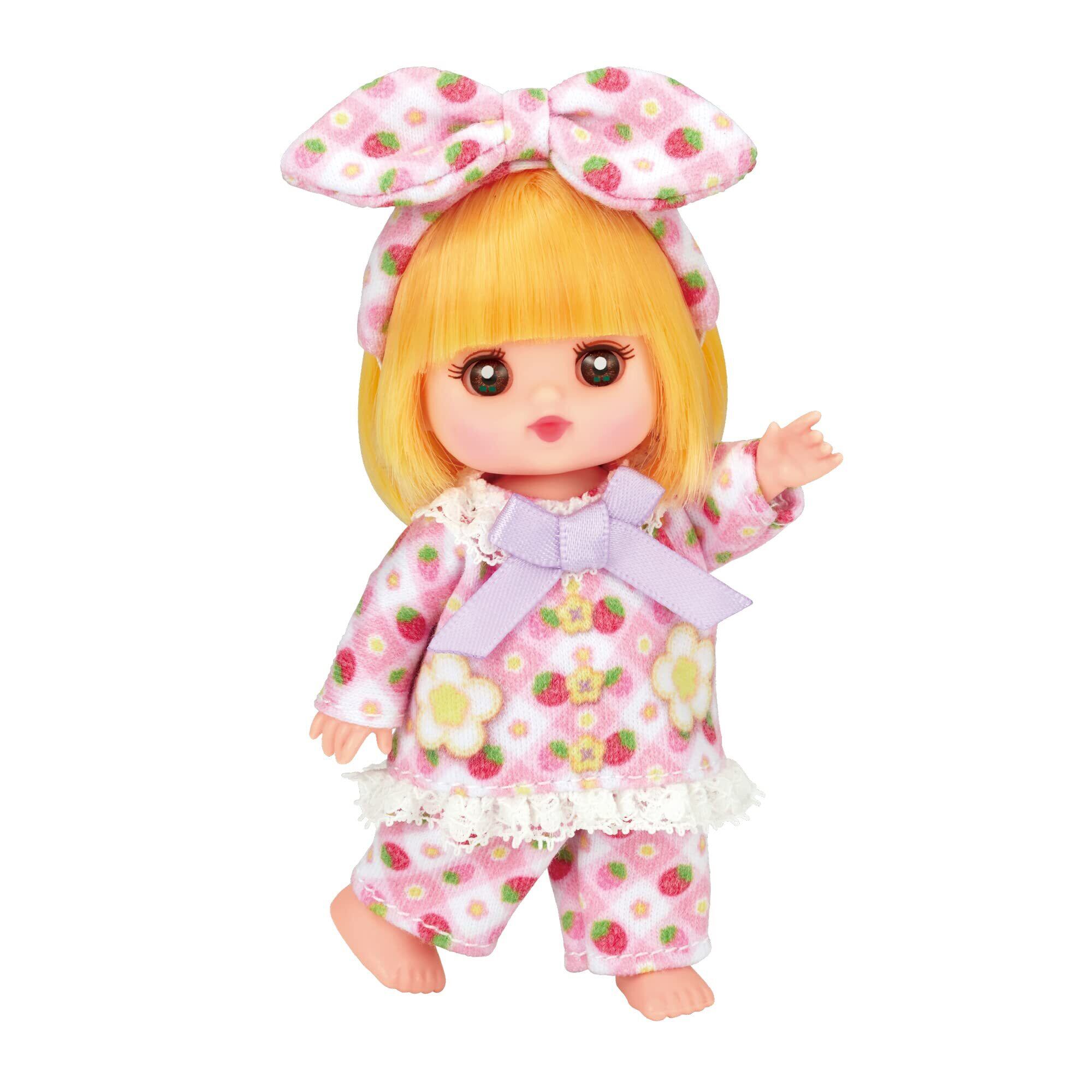 ポケットメルちゃんシリーズのお人形に着せられるきせかえ服セット。<br>いちご柄のパジャマとゆめかわデザインのワンピースです。<br>(お人形は含まれておりません。)