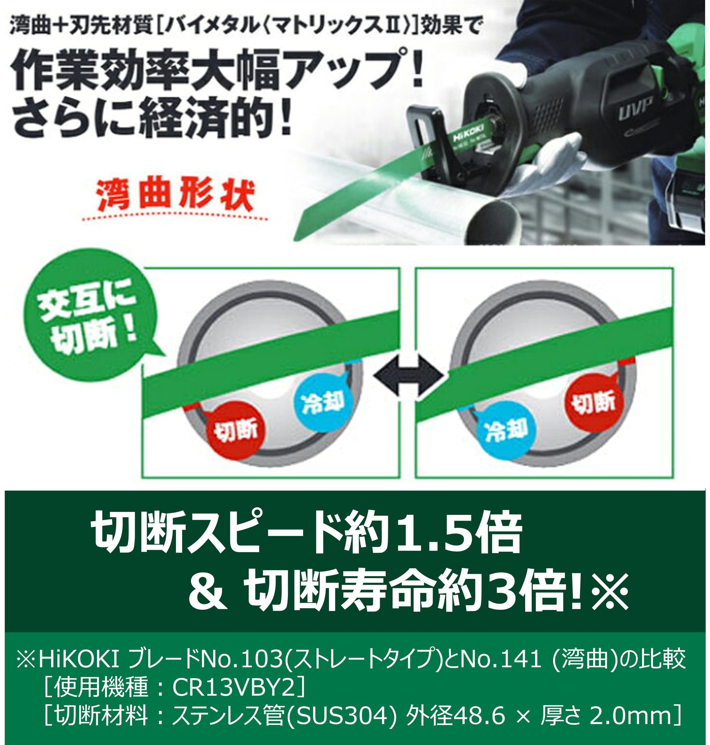 湾曲+刃先材質[バイメタル(マトリックスII)]効果で作業効率大幅アップ! さらに経済的!