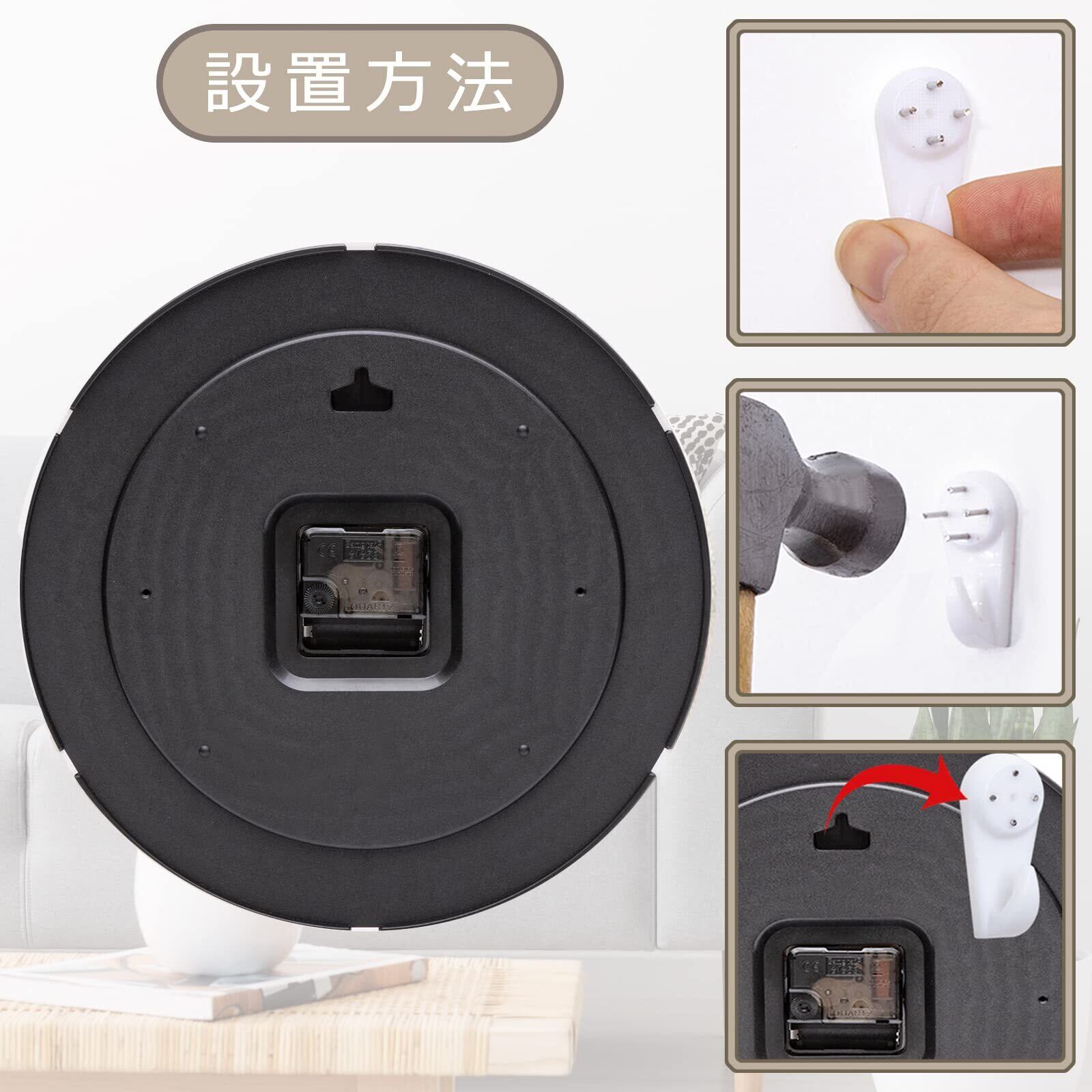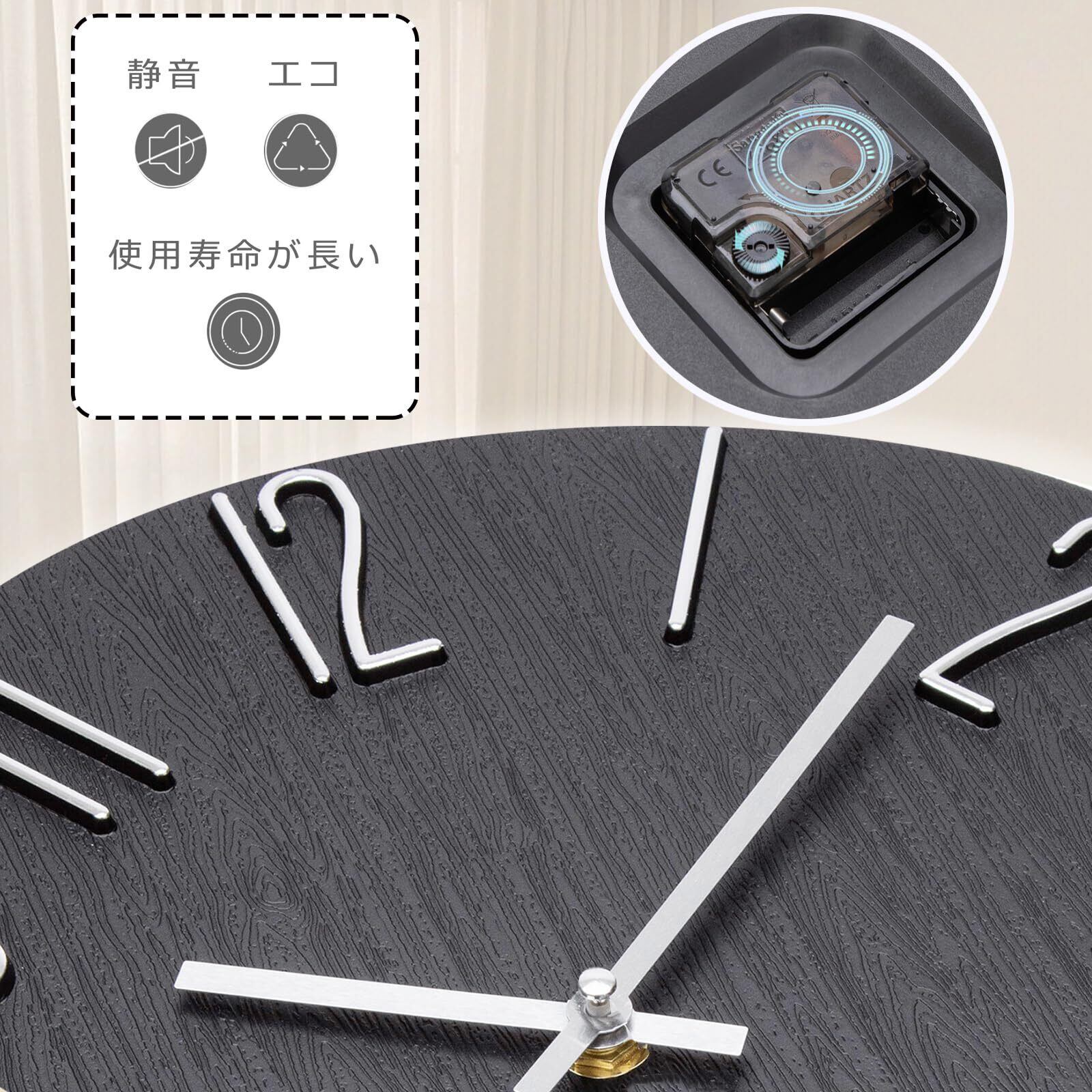 AUTVIVID 壁掛け時計 連続秒針 静音 北欧 ウッド 直径30cm おしゃれ アナログ 掛け時計 大数字 見やすい クロック 自宅 欧米風 モダン インテリア 部屋飾り (ブラック) | BASE SHOP