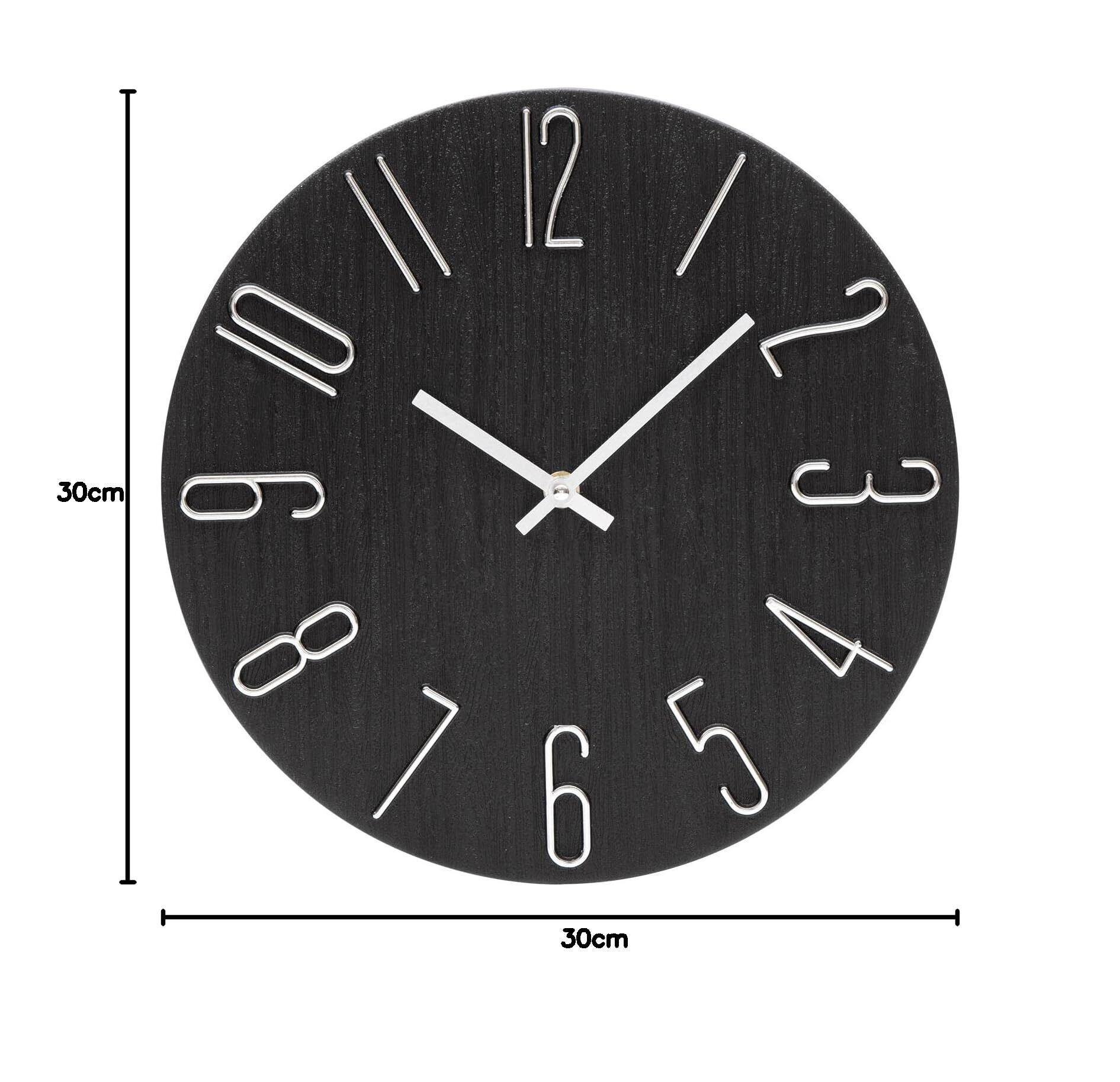 AUTVIVID 壁掛け時計 連続秒針 静音 北欧 ウッド 直径30cm おしゃれ アナログ 掛け時計 大数字 見やすい クロック 自宅 欧米風 モダン インテリア 部屋飾り (ブラック)