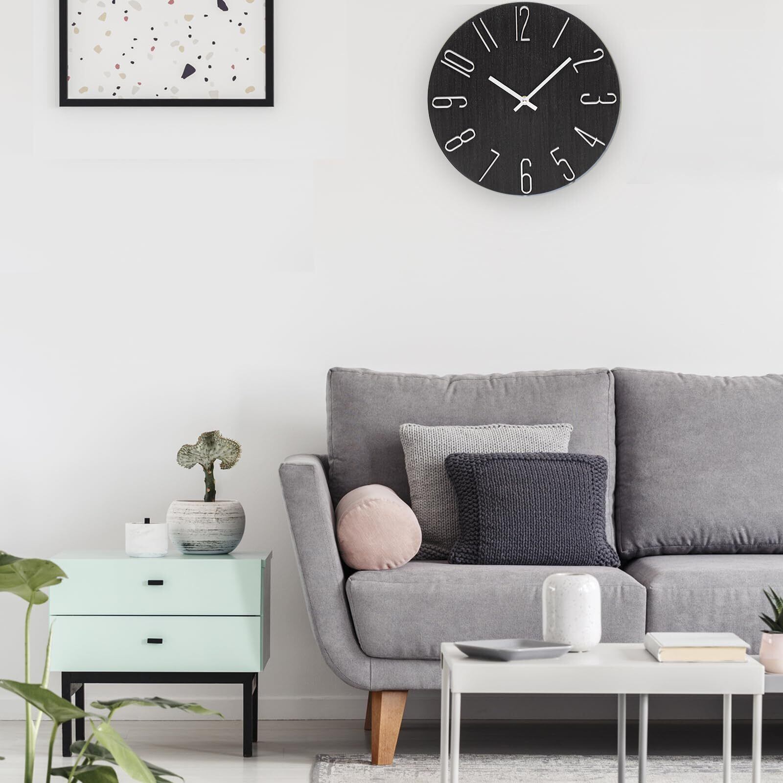 【北欧風】シンプルかつモダンである北欧風のデザイン。部屋のインテリアにも馴染みます!また、文字盤に凸凹な3D立体数字は視認性が高く、遠くからもはっきり見えます。