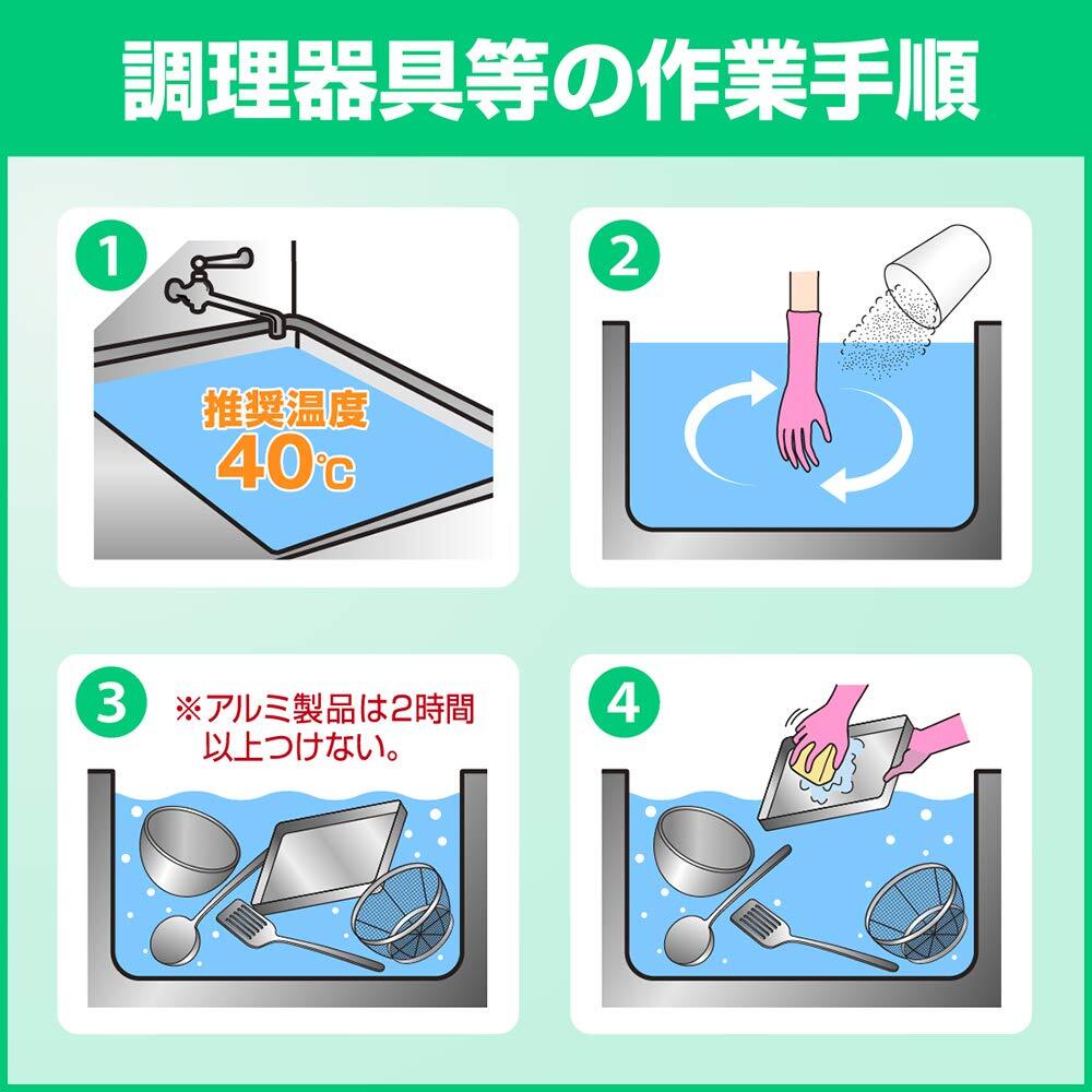 ○落としにくいこびりつき汚れや蓄積汚れをつけておくだけで汚れを浮かせて落としま す。○防腐剤配合なので、アルカリや漂白剤に弱いアルミ商品にも使用いただけます。○除菌成分配合なので、洗浄と同時に除菌ができます。