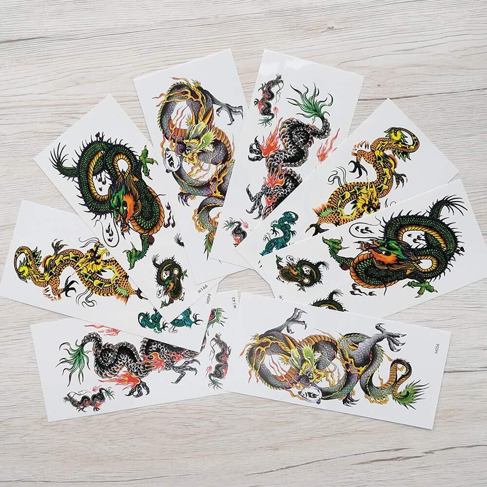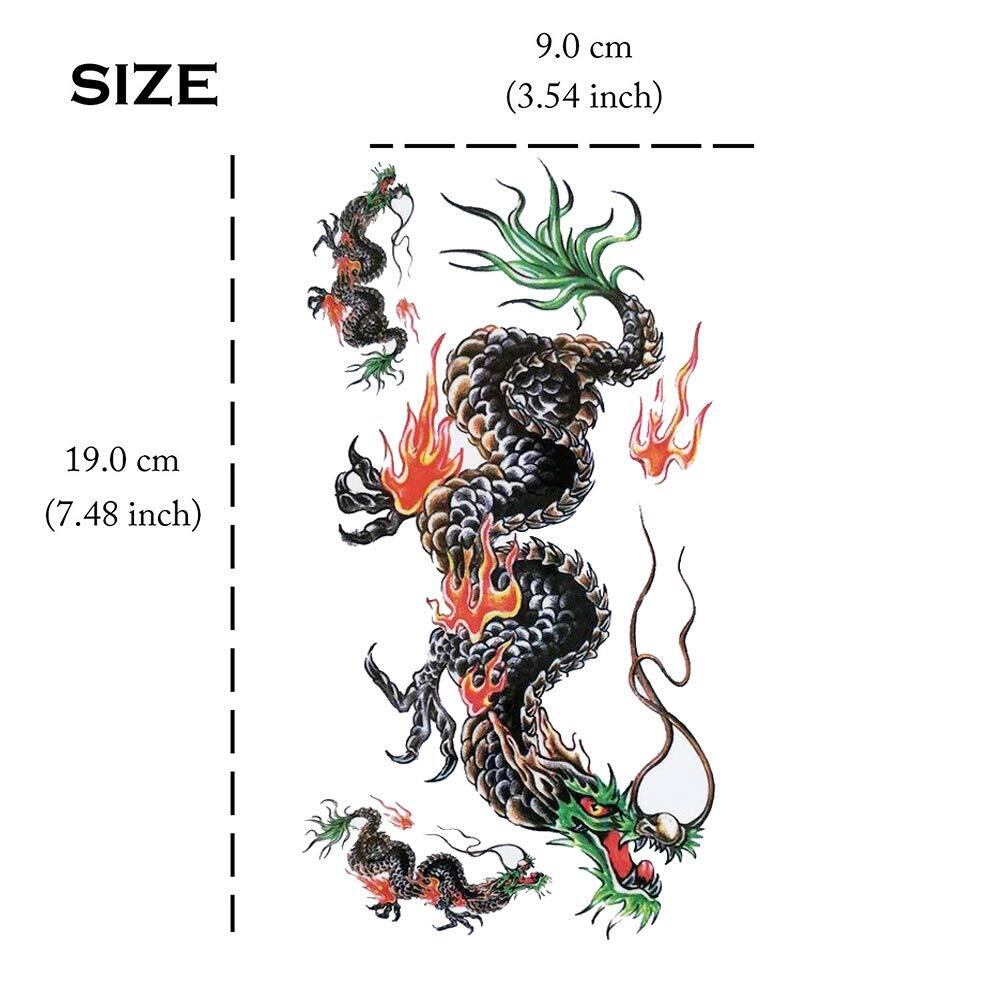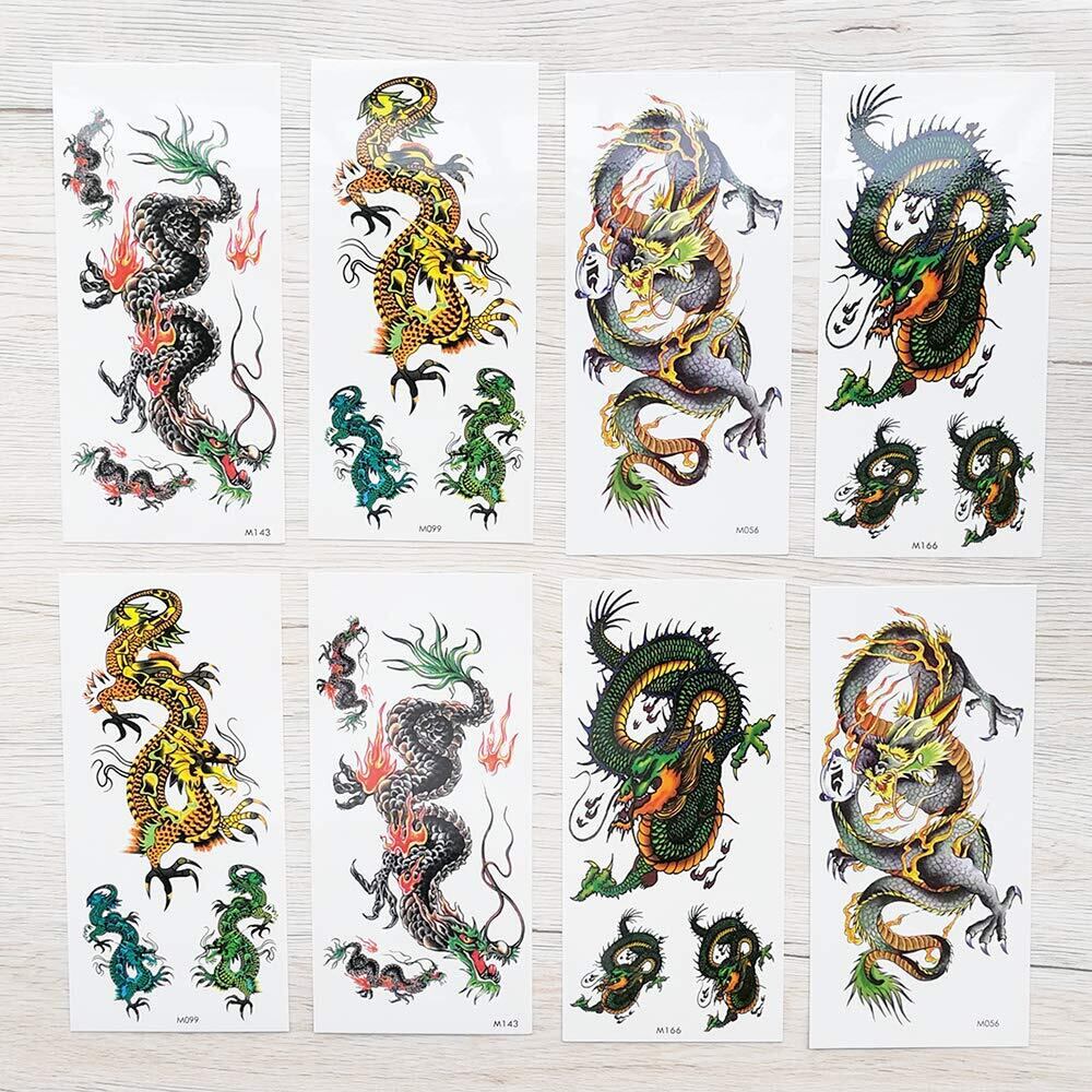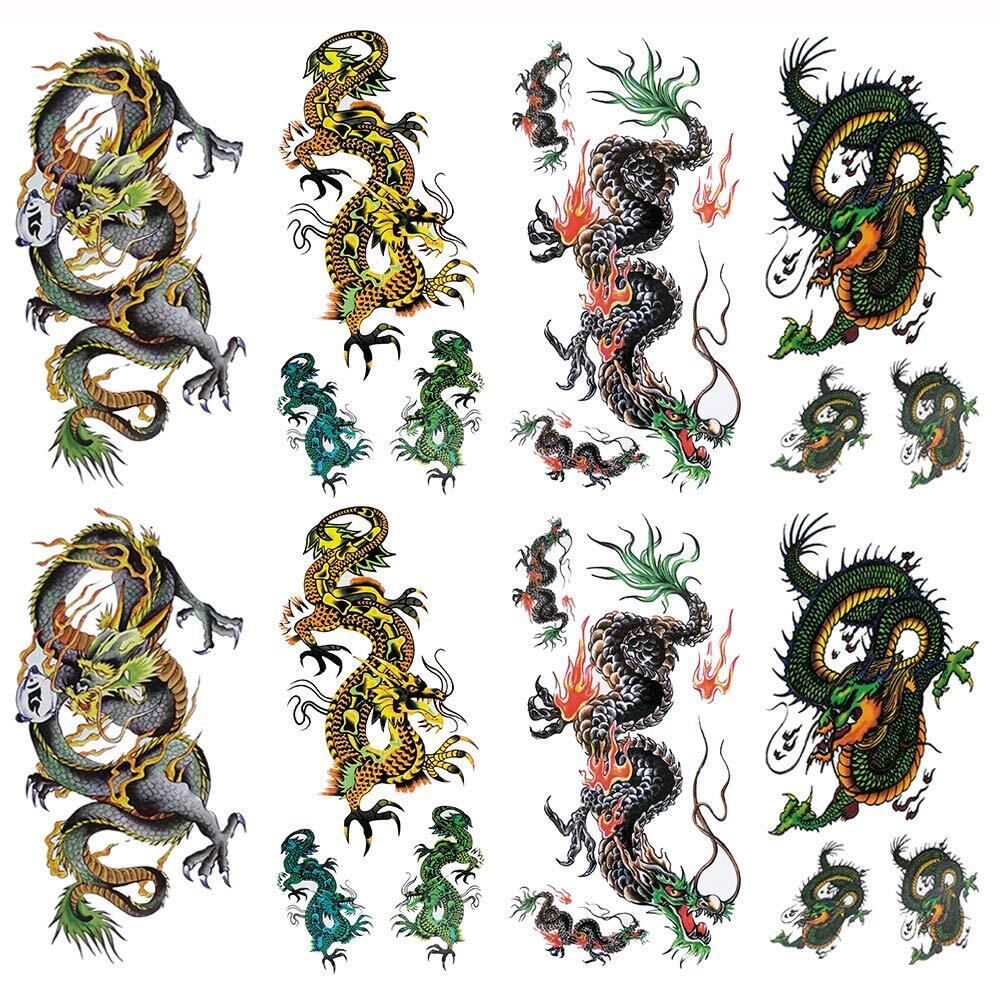 Yesallwas タトゥーシール 龍 竜 飛竜 8枚セット リアル 入れ墨シール タトゥーステッカー ボディーシール 刺青シール 長持ち 防水 メンズ 腕、足、体、胸、肩、背中に簡単貼る (E.8枚セット(9×19cm)) | BASE SHOP
