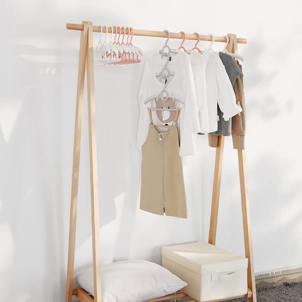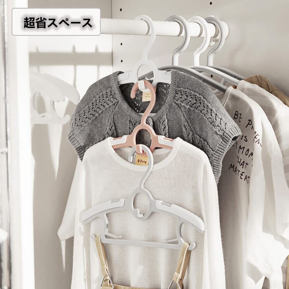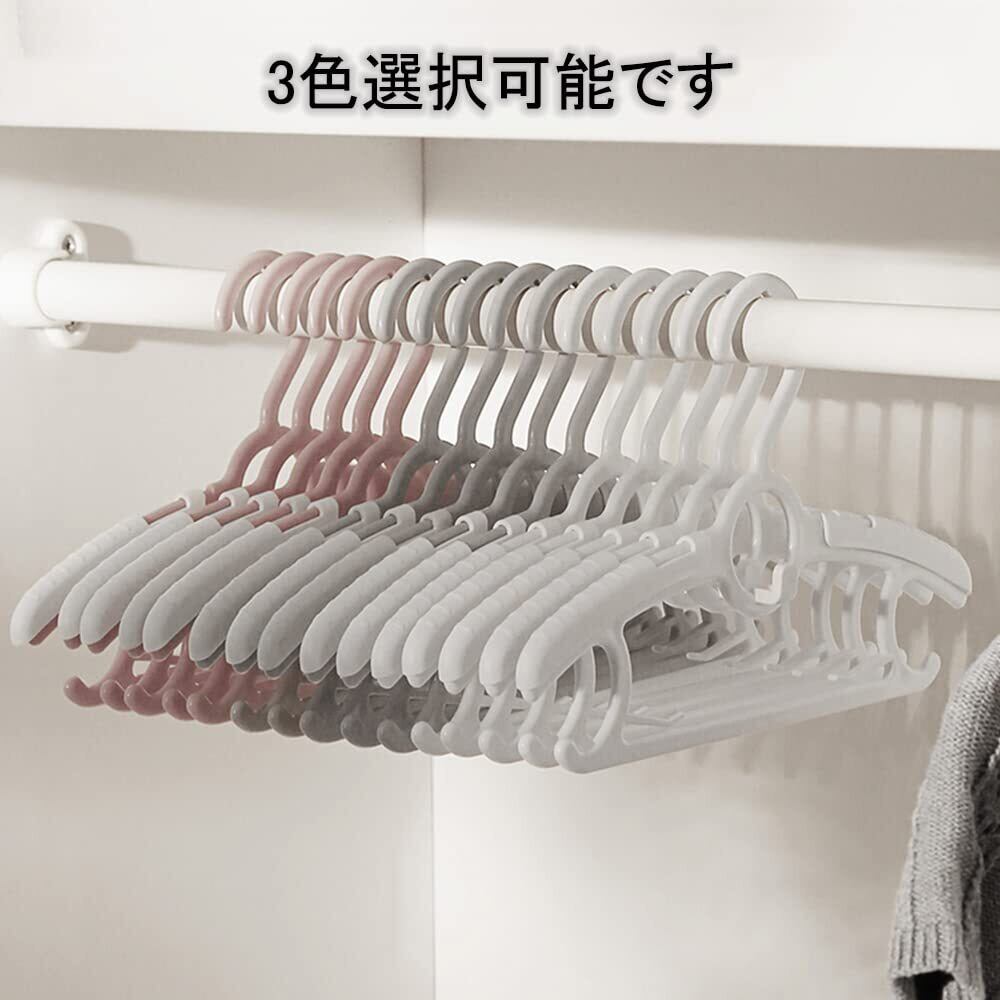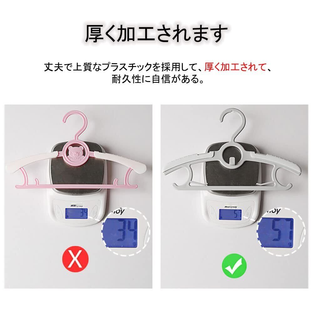 【伸縮ベビーハンガー】:子供用ハンガーのショルダー部はスライドしサイズ調整ができるため、約28cm~約37cmまで調整可能!4段階調整可能。赤ちゃんが大きくなってもハンガーを伸縮させることで長く使えます。新生児から18歳までの衣類に合わせます、3色選択可能です(ホワイト、グレー、ピンク)。