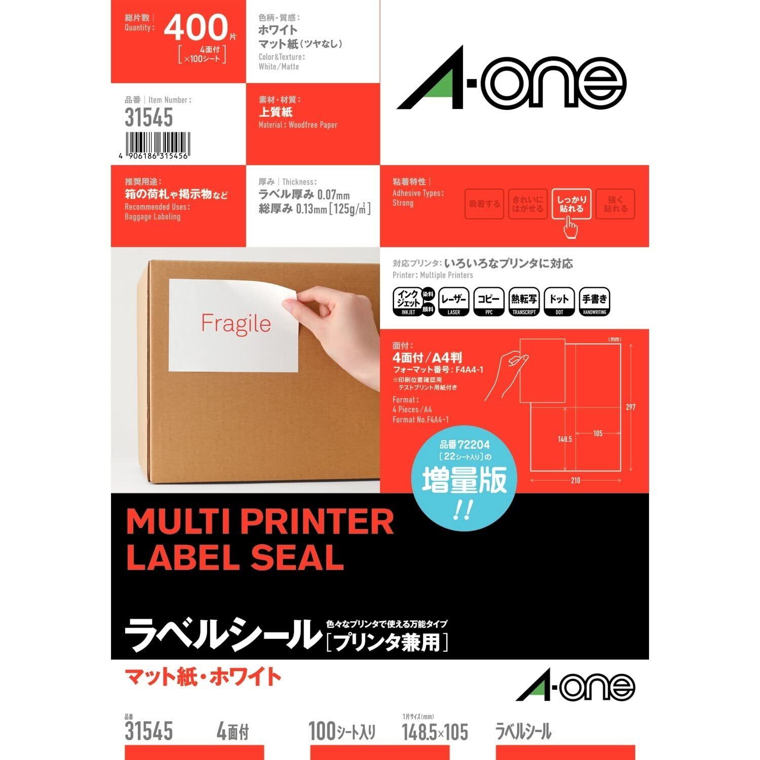 ラベルサイズ:148.5mm×105mm(2列×2段)