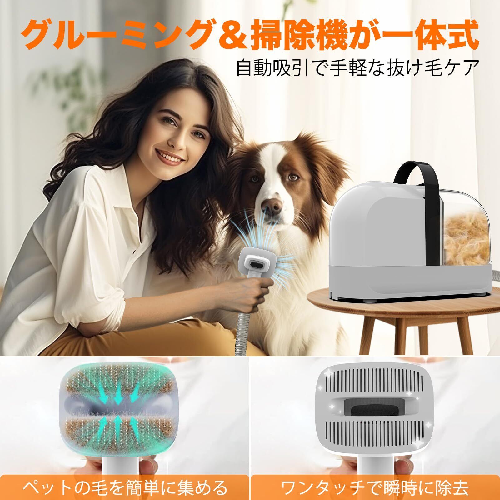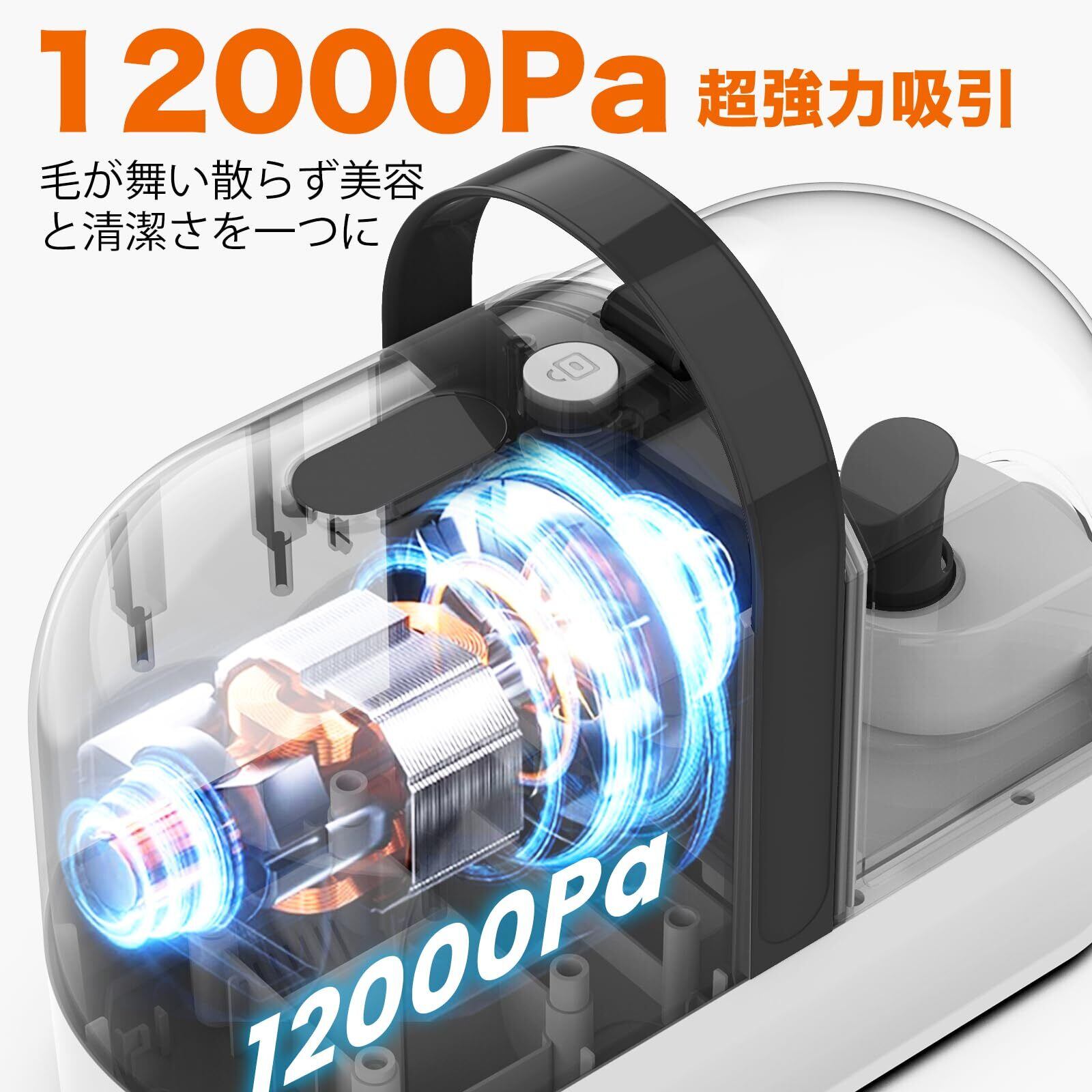 12000 PAアップグレードしたグルーミング掃除機:強力な12000 Paの吸引力で更にペットにストレス与えず、楽にグルーミングできる掃除機です。ブラッシングにピッタリなサイズに改良したグルーミングブラシは体の毛はもちろん、手足、眼鼻周辺、脇の下などの細部のケアもスムーズにできます。