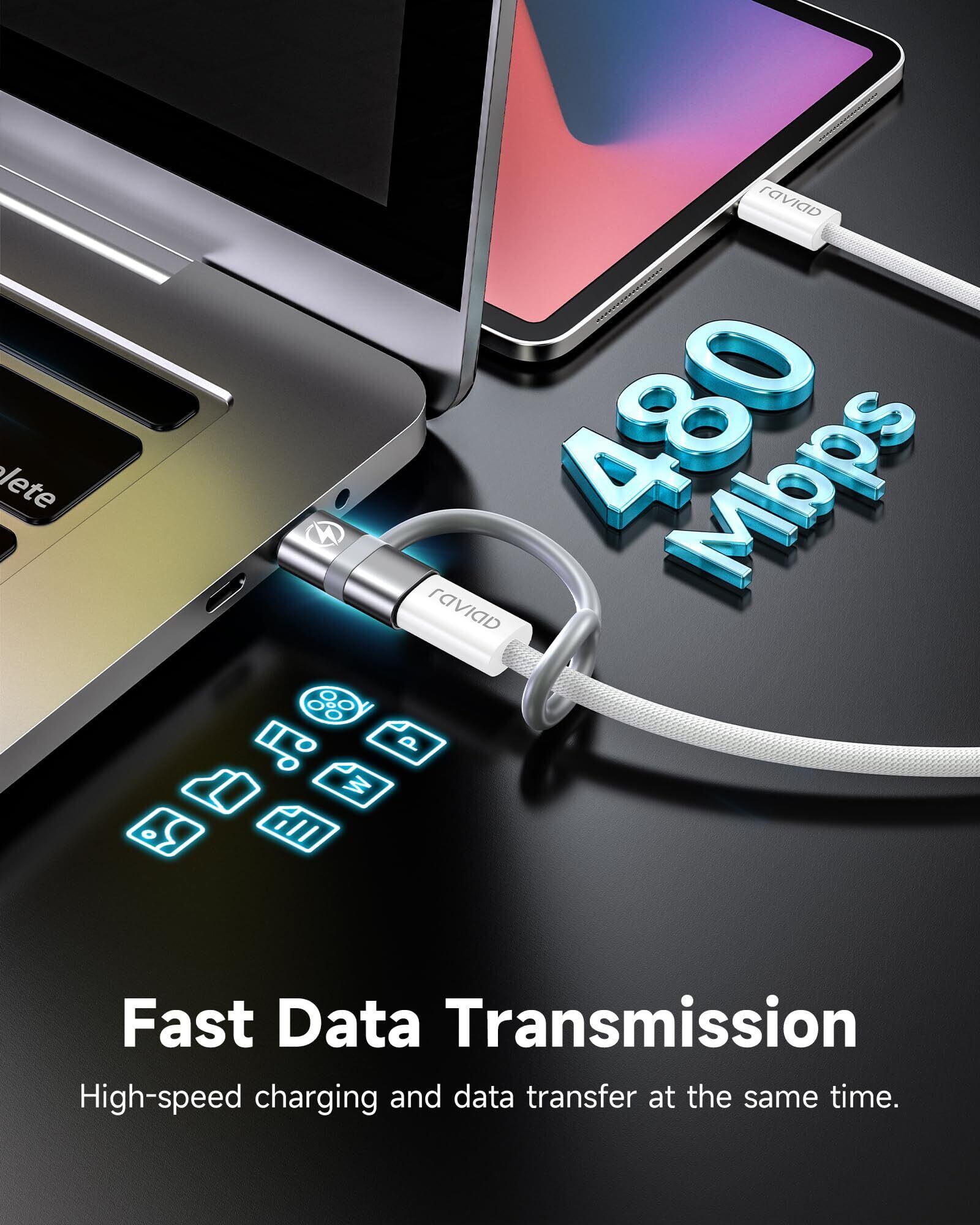 RAVIAD Type C to ライトニング 変換アダプタ (2個セット) 36W PD急速充電 PDチップ搭載 高速データ転送 USB-C i-Phone 変換コネクタ アルミ合金外装 シリコンバンド設計 タイプCからiOS変換コネクタ iOS USB CアダプタiPhone 14 13 12 11 Pro Max, Pad Pro/Air/Mini, Pod/Touchなどi-OS機器対応