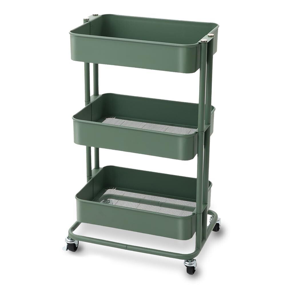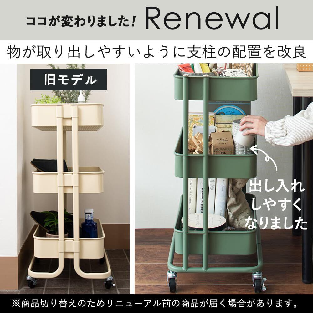 【取り出しやすくリニューアル! 】アイリスプラザ キッチンワゴン KW-L001 カーキ 幅約46.3×奥行約34.9×高さ約78.1 KW-L001