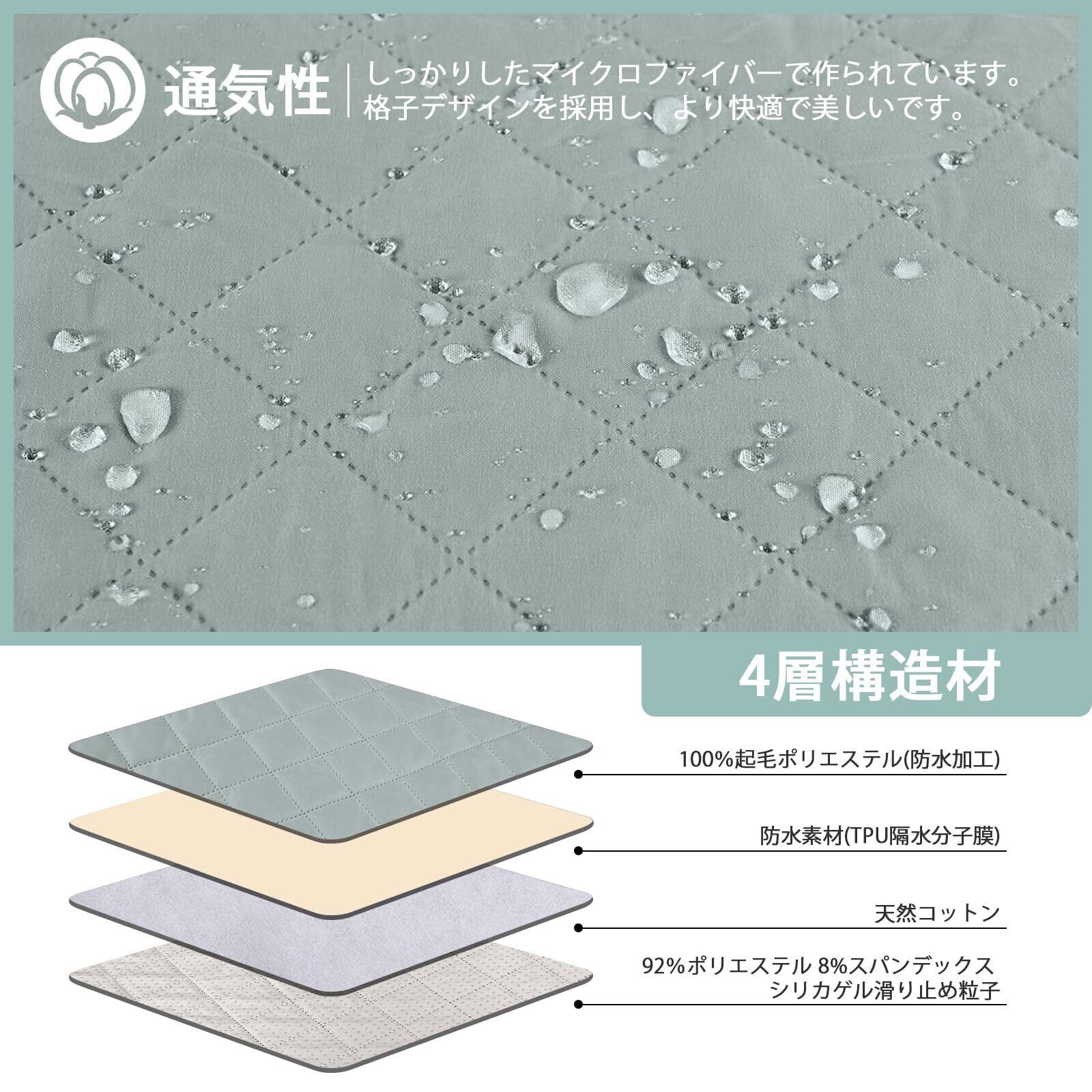 【防水素材】TAOCOCO 防水 ソファカバーは表地:ナノ防水塗装+100%起毛ポリエステル 中地:防水素材(TPU隔水分子膜)+天然コットン 裏地:92%ポリエステル+8%スパンデックス+シリカゲル滑り止め粒子 。