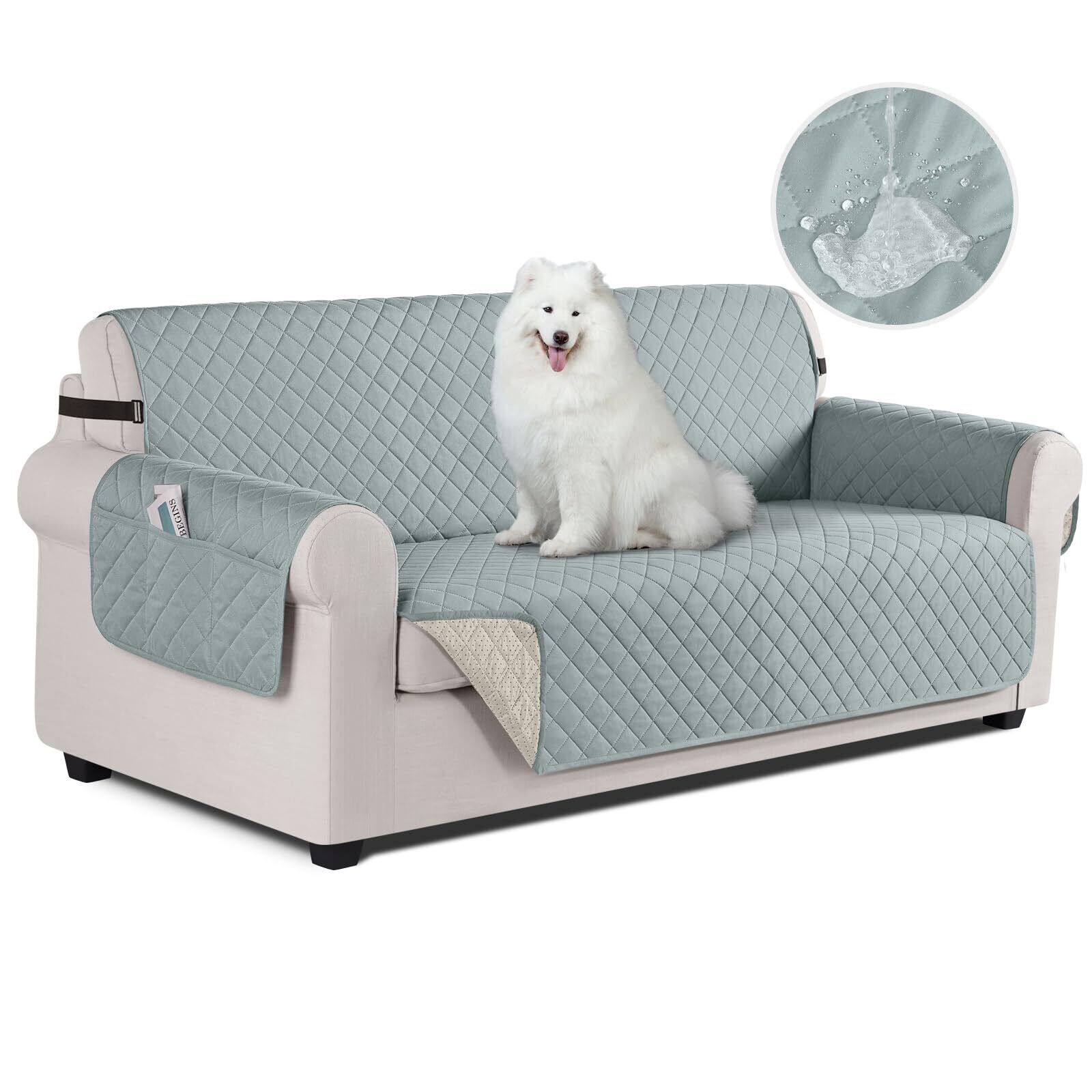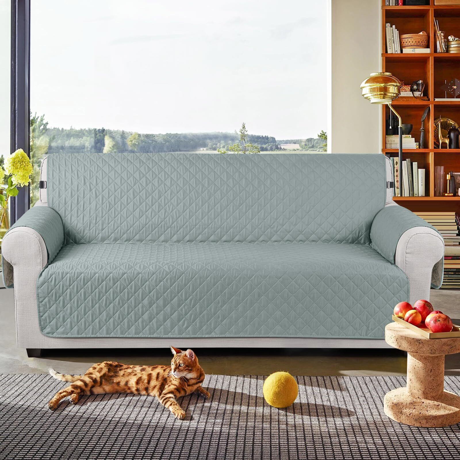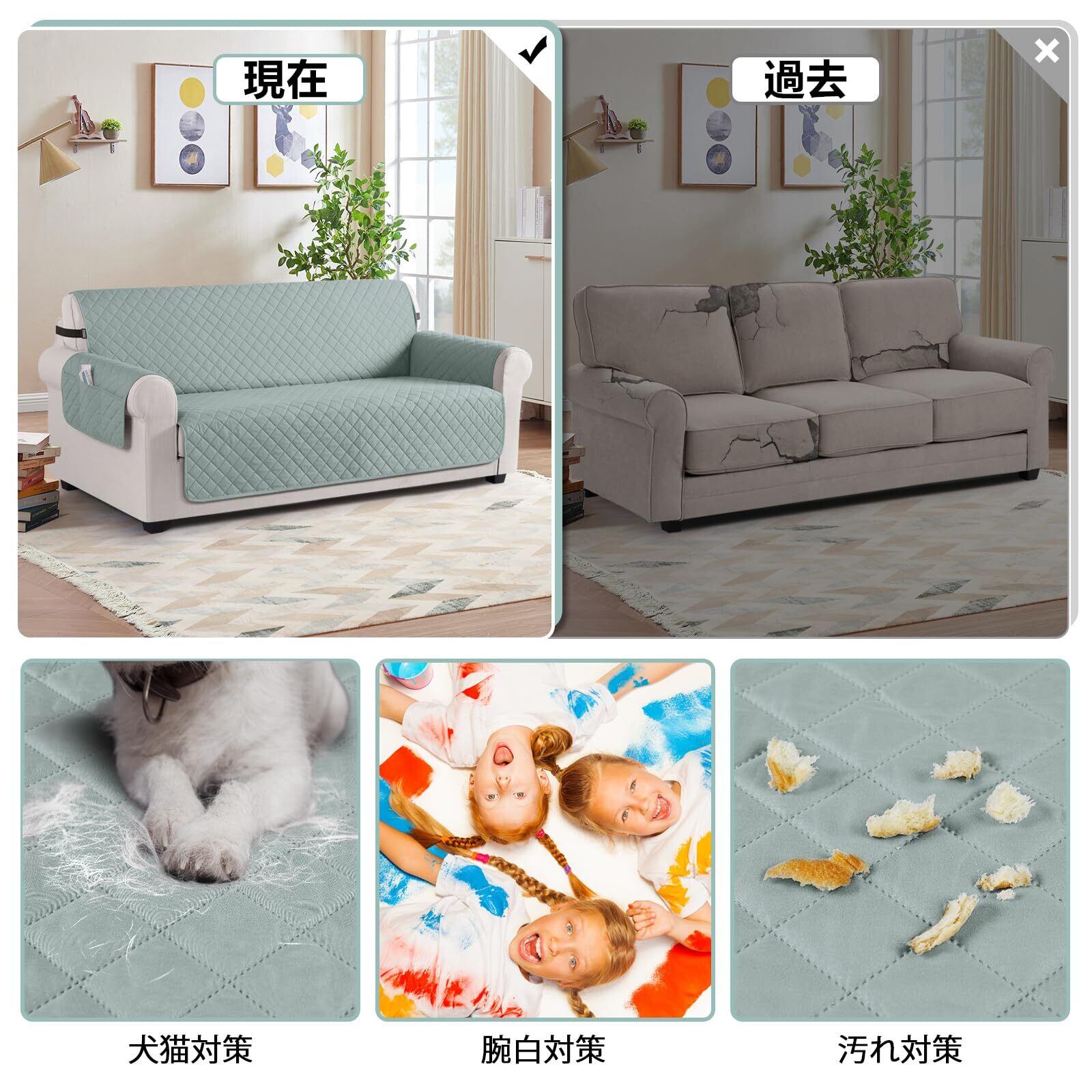 TAOCOCO ソファカバー 全面防水 ソファーシート 犬猫対策 毛髪不粘着 滑り止め 1人2人3人掛け 肘付き 替えソファカバー 防塵 汚れ防止 傷防止 爪とぎ防止 マルチカバー 四季適用 撥水加工 丸洗い可能 (グリーン色, 3人掛け) | BASE SHOP