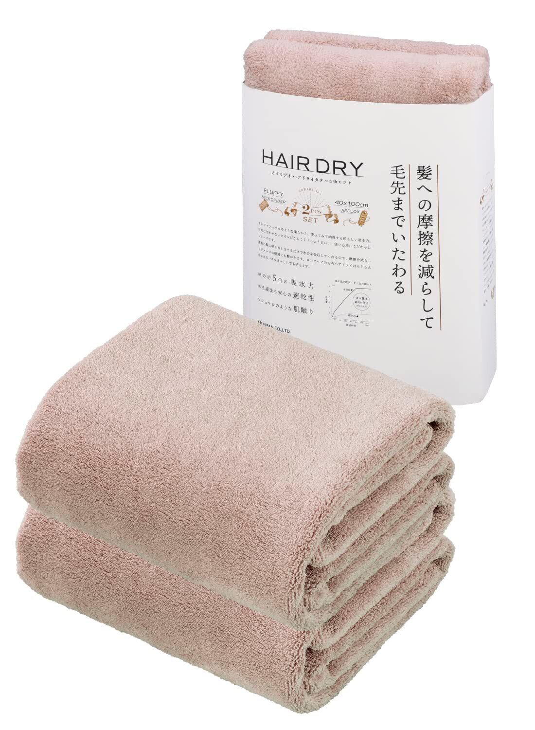 carari(カラリ) ヘアドライタオル 吸水力[5倍]のマイクロファイバー DAY ピンク 2枚組 繊維の隙間に素早く吸水 速乾 マシュマロ肌触り ふわふわもちもち 40×100cm シービージャパン カラリデイ