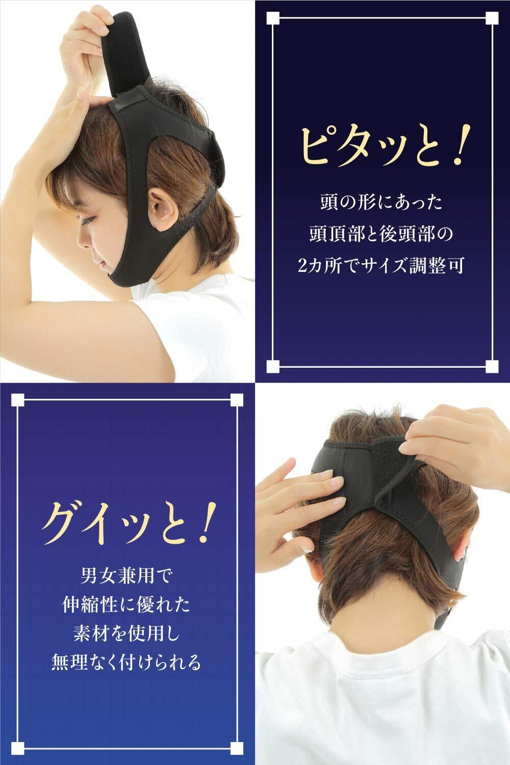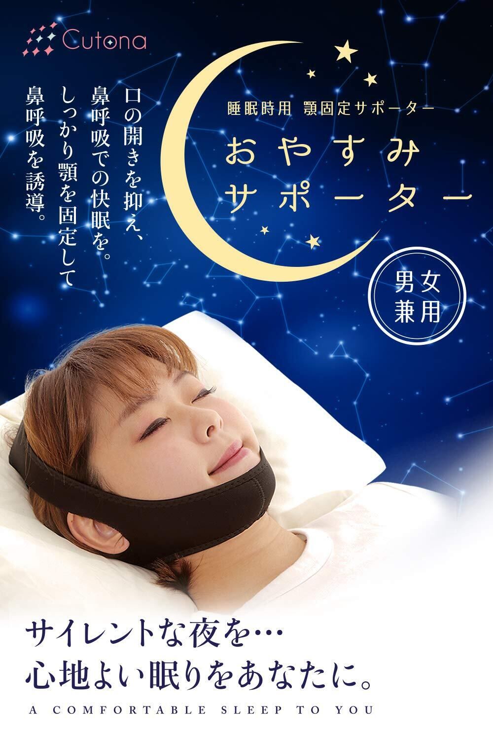 Cutona(キュトナ) いびき防止グッズ 顎サポーター 鼻 呼吸 【サイズ調整可能】 (黒)