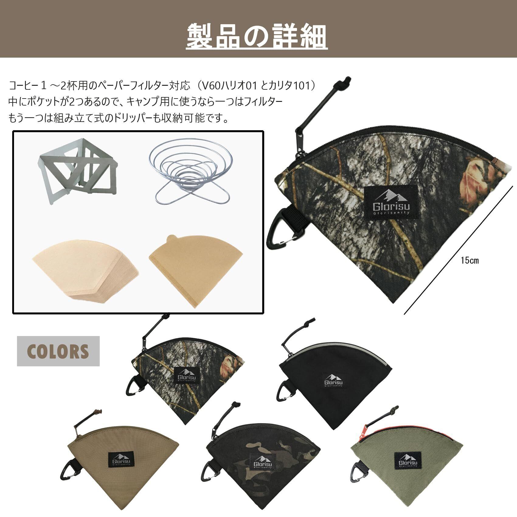 Glorisunity コーヒーフィルター ケース ペーパーフィルター ケース ハリオ V60 ペーパーフィルター 円錐型防水防塵 キャンプ アウトドア カラビナ付き 軽量 携帯 家庭用 (リアルツリー) | BASE SHOP