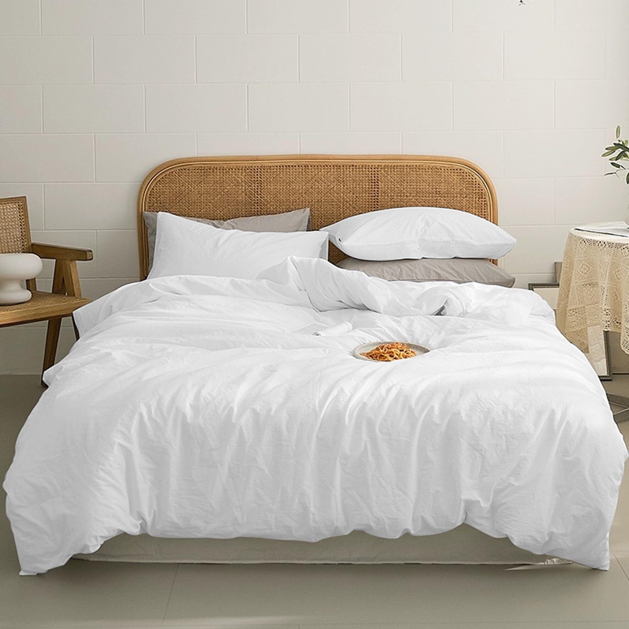 AYO 掛け布団カバー セミダブル しっとり柔らか 長く使える 摩擦耐久性 生地の縮みや型崩れ防止に 乾きやすい 速乾 ベタつき・ムレ防止で夏も快眠 オールシーズン 丸洗いOK(ホワイト セミダブル・170X210cm) | BASE SHOP