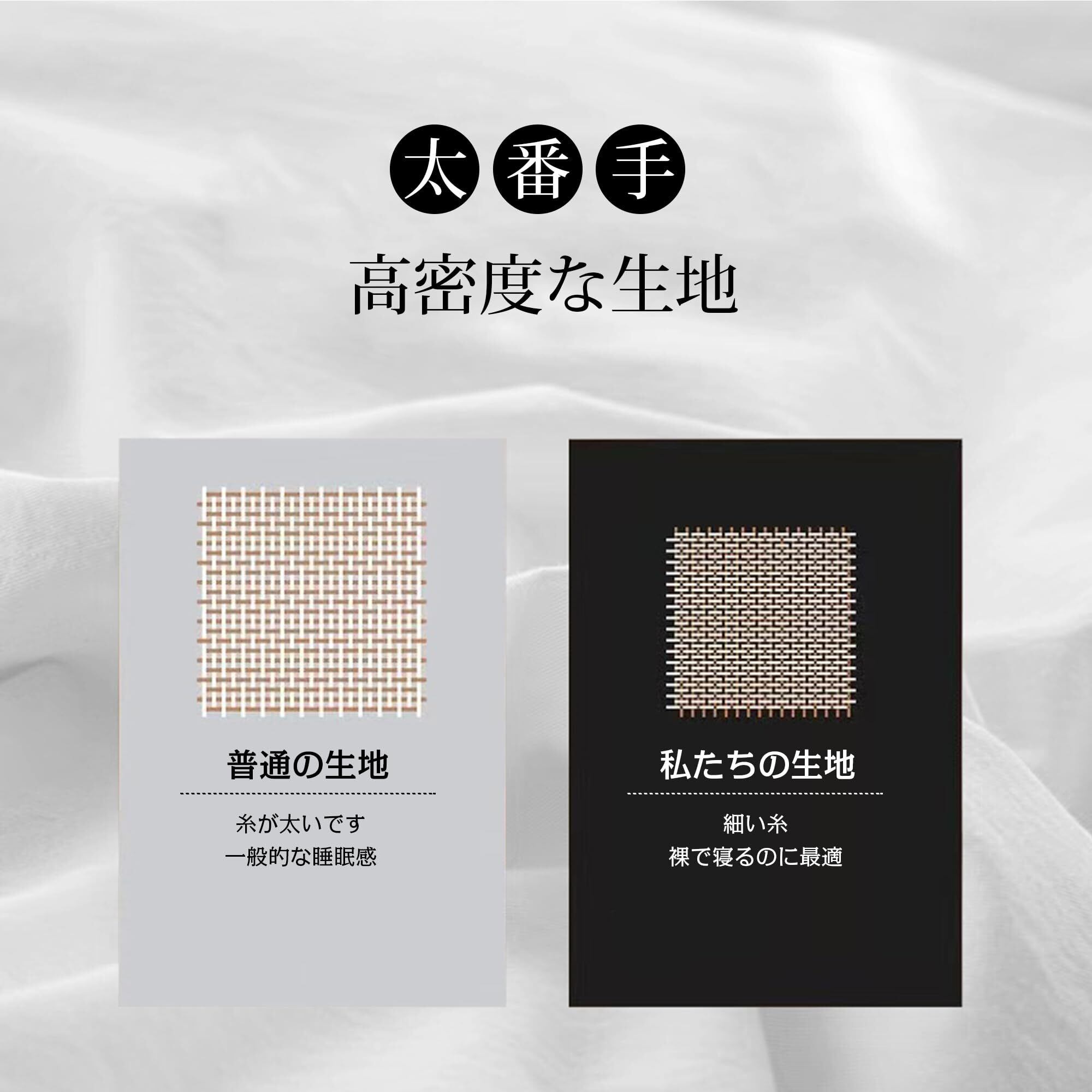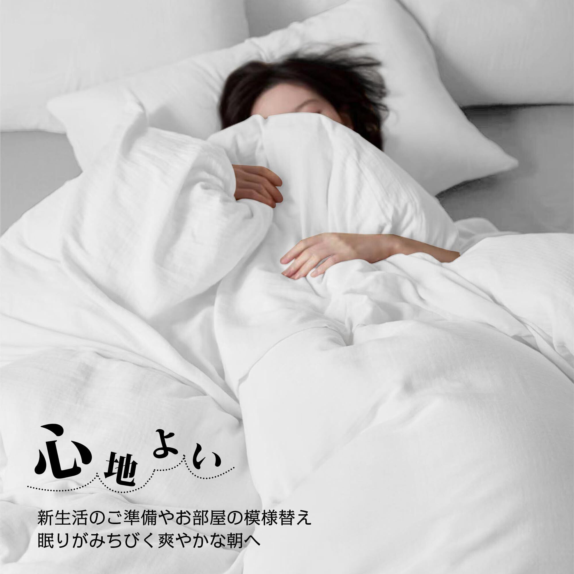【速乾性に優れ 0秒で吸水】かけ布団カバーは優れた吸湿性・通気性に優れ、汗をかいてもベタつかずサラサラ感を保ち、乾きも早いです。サラッとした肌触りでベタつきません。しっとりと肌に触れると心地よく、毎日快適に眠れて、一年中お使いいただけます。