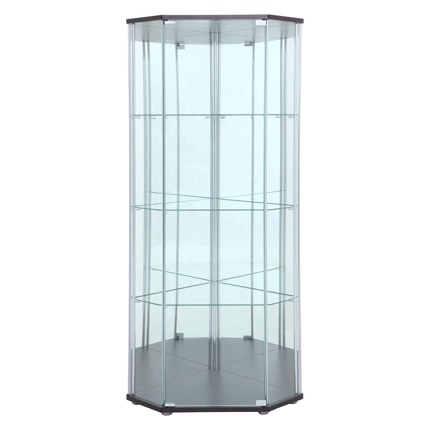 不二貿易 コレクションケース フィギュアケース 4段 幅52×奥行52×高さ162cm ブラウン 強化ガラス 背面ミラー 組立商品 コーナータイプ 98846