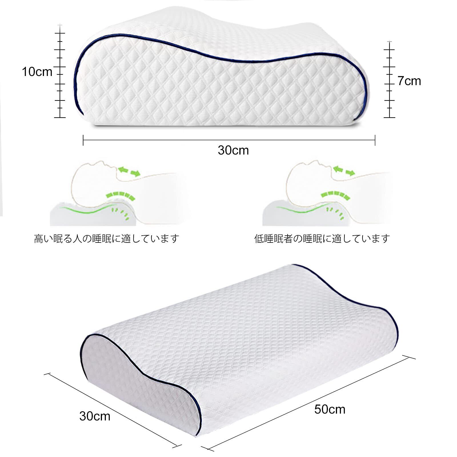 Fityou 安眠枕 低反発まくら 快眠枕 枕 pillow 二段階の選べる高さ 通気性 カバー洗濯可 肌触り良い 子供大人兼用 ホワイト(50*30*7/10CM)