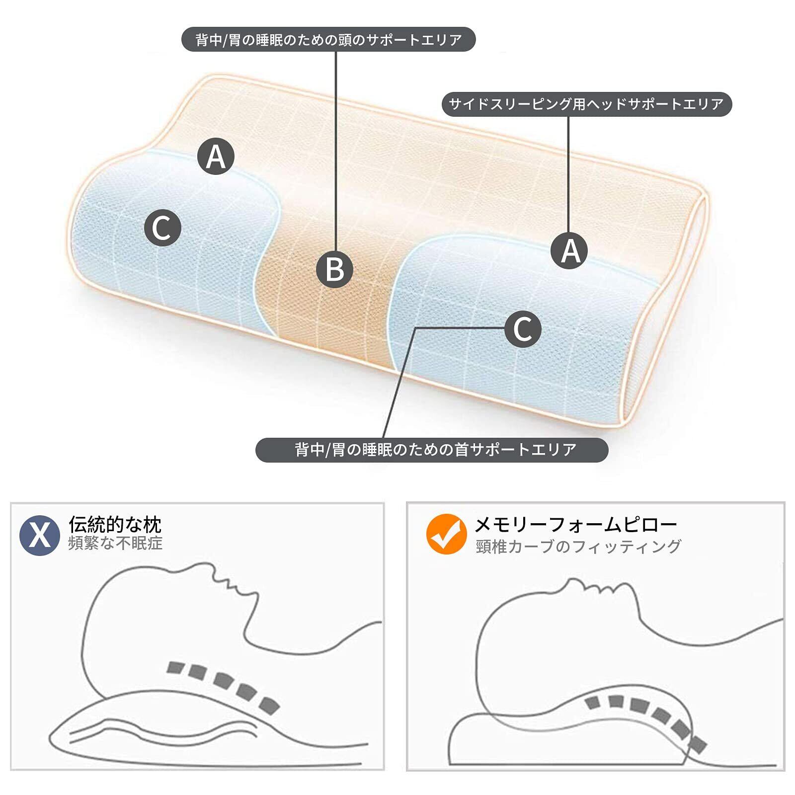 【どんな寝姿勢きでもラク、頚椎・首・頭をやさしく支える安眠枕】人間工学に基づいた設計、しっかりと頭、首、頚椎、肩をやさしく支えています。仰向け、横向き、どんな姿勢でも理想的な曲線を維持できるから寝心地がもっと安定できます。