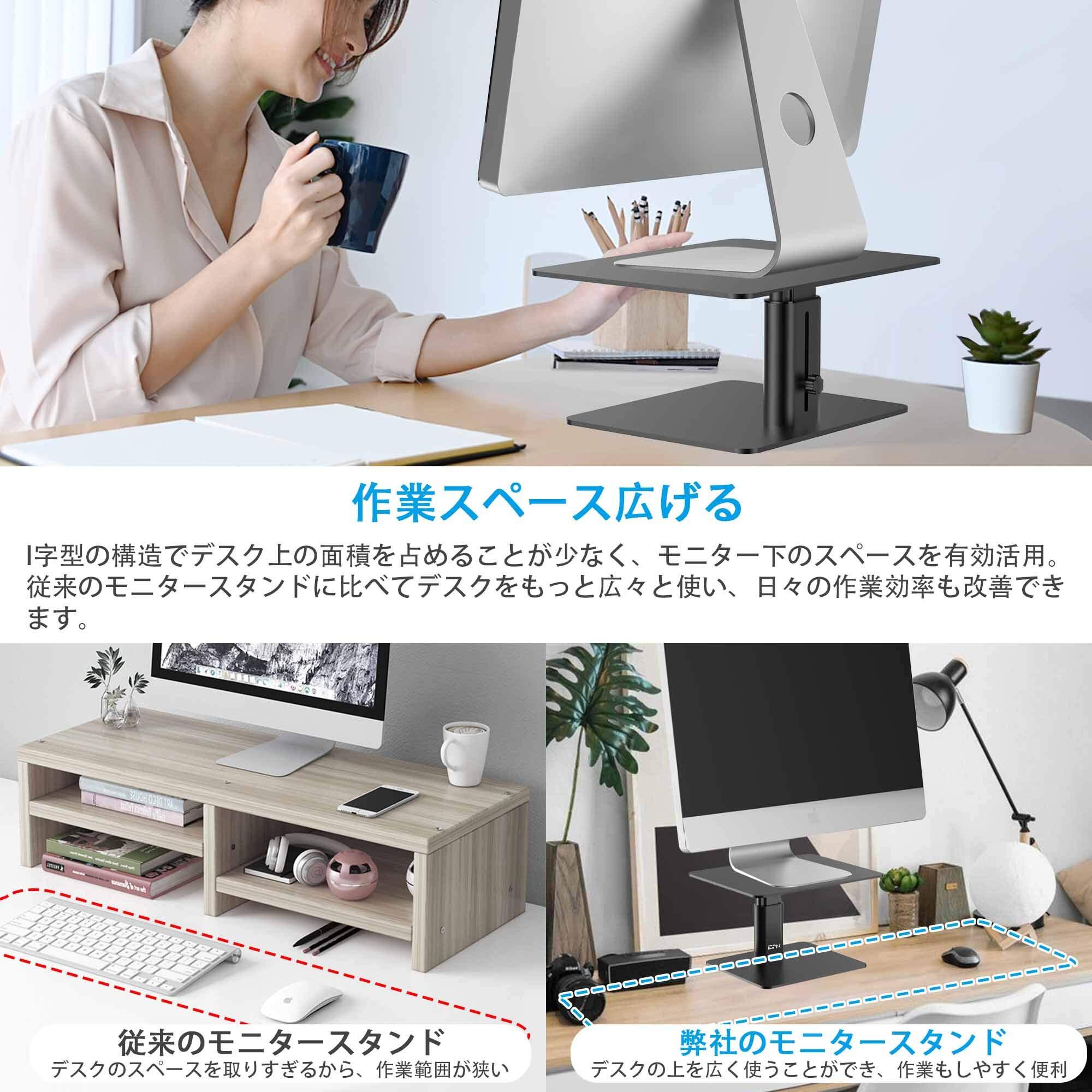 EPN モニター台 卓上 モニタースタンド 金属製 高さ調節 11cm~17cm 耐荷重15kg 安定性 姿勢改善 パソコン台 ブラック (Black)