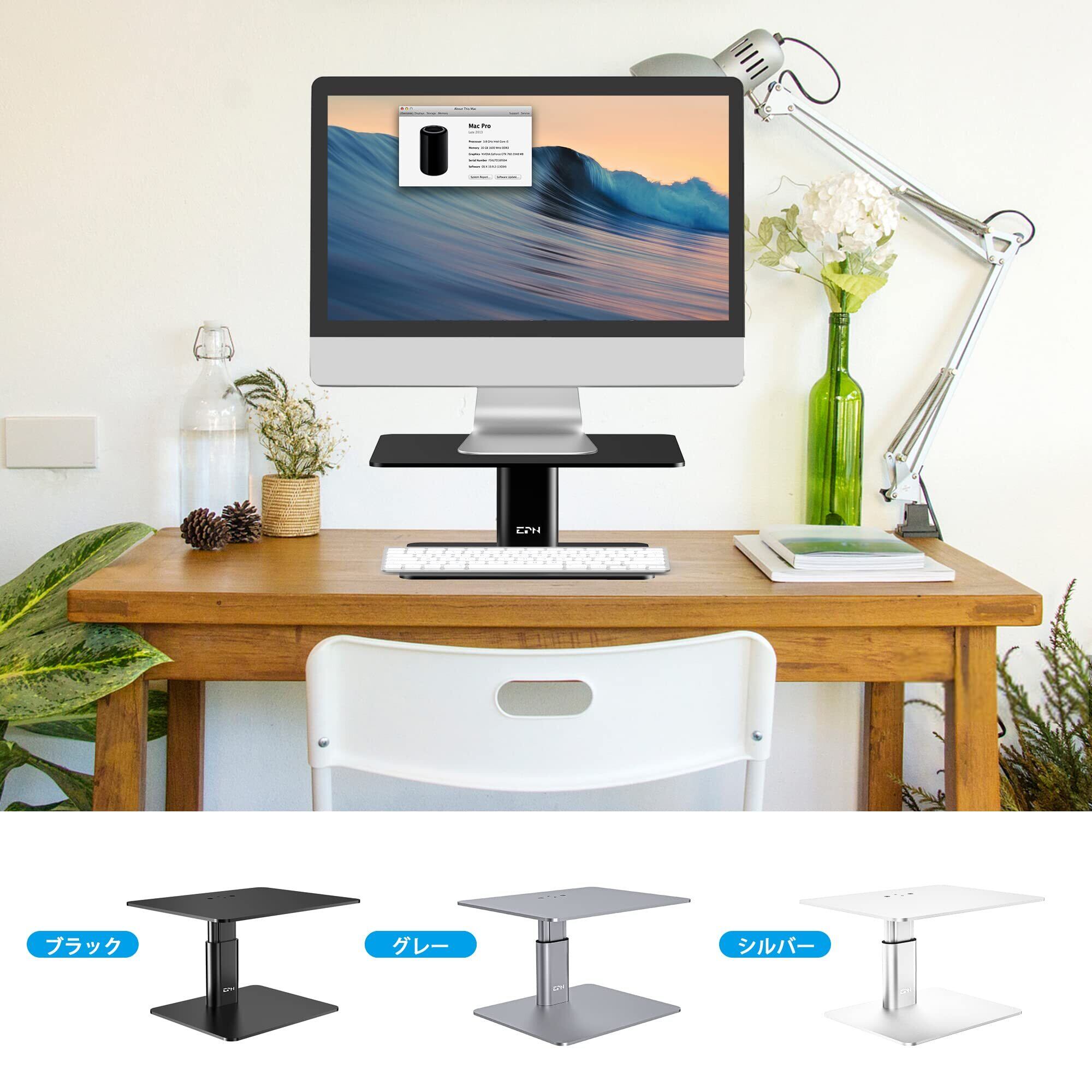 【シンプルなデザインで馴染みやすい】:派手さがないマッドブラックと銀灰色の2色が用意しており、表面はなめらかで上質感があり、デザインもシンプルでオフィスや自宅など様々なインテリアに馴染みやすいです。実用性と美観を兼ね備え、モニタースタンドとして利用だけではなく、ノートパソコン、プリンター、テレビ、タブレットの台としても幅広く使えます。