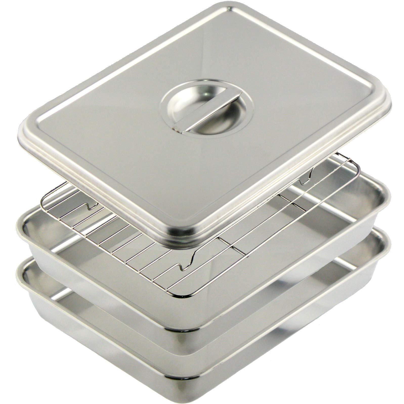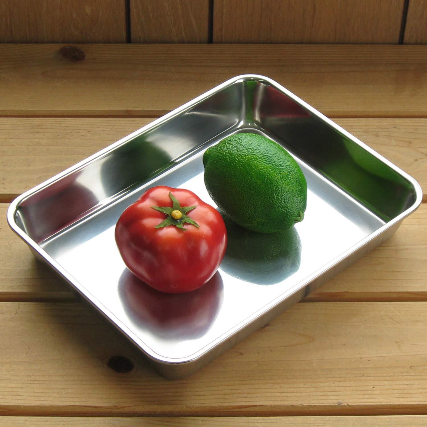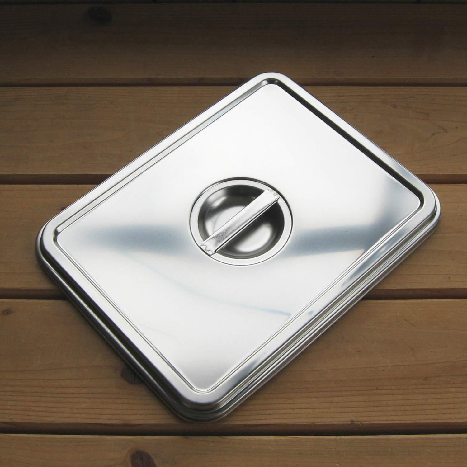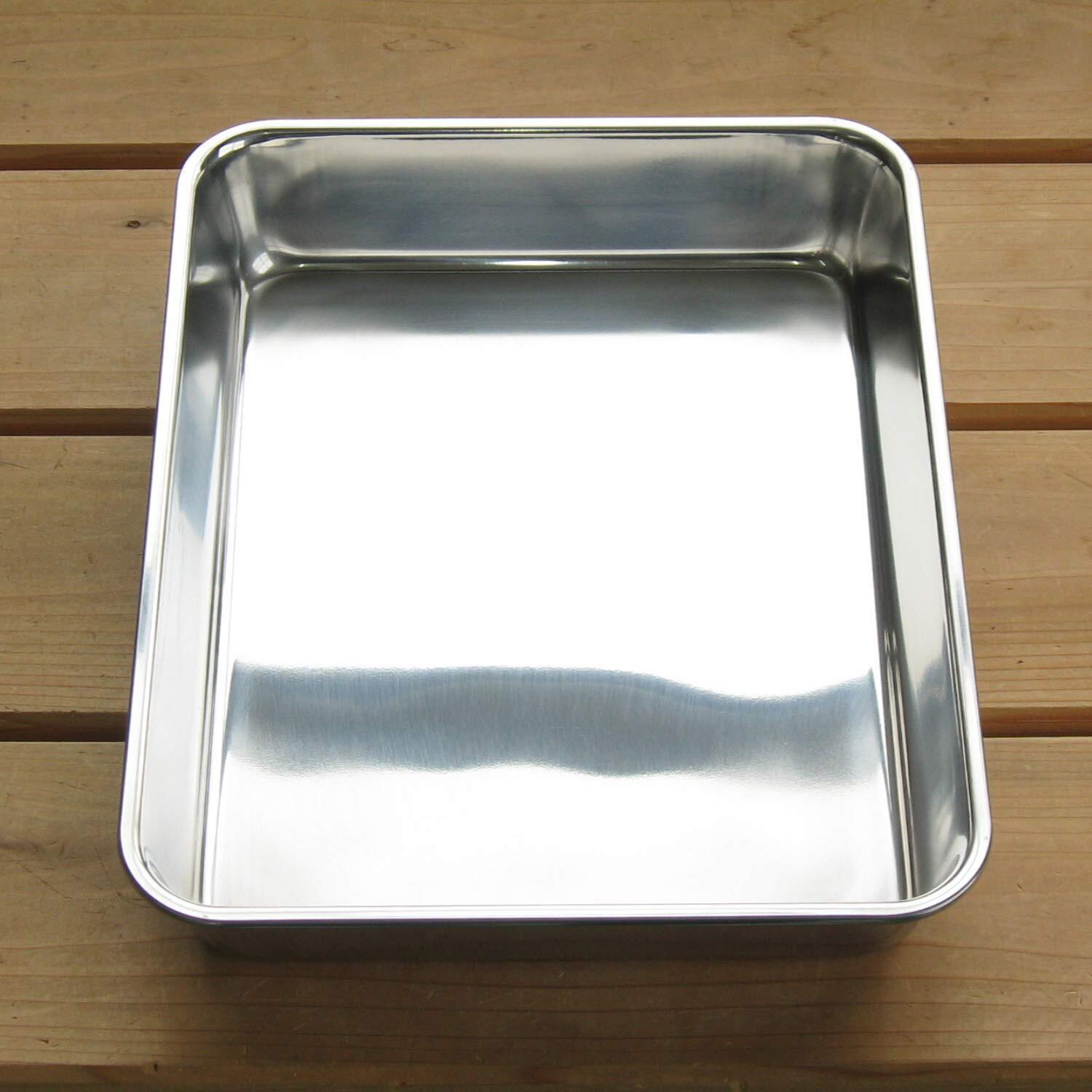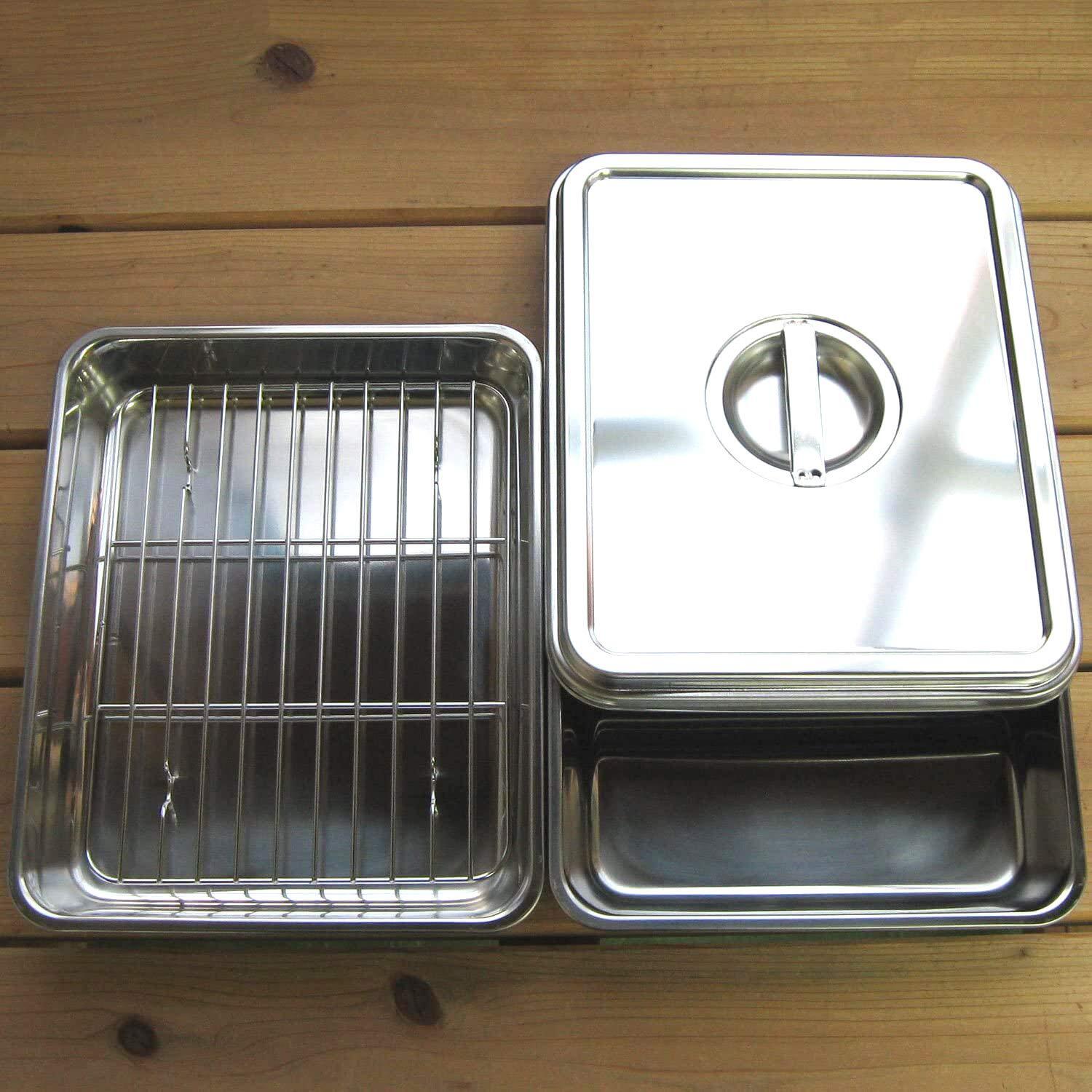 新潟 燕三条にて製造されている18-8ステンレスの角バット+蓋+アミの下ごしらえセット。