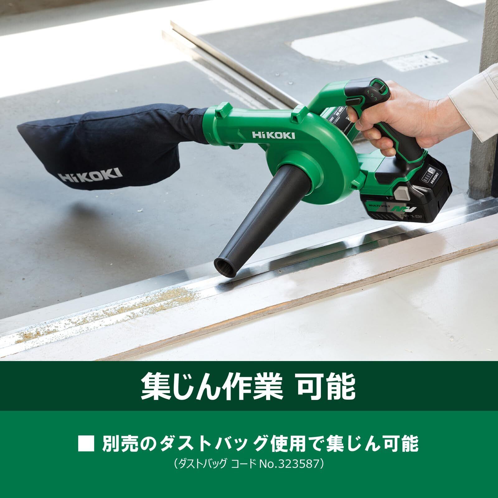 HiKOKI(ハイコーキ) 14.4V 18V 兼用 充電式 ブロワ 大風量 低振動 風量3段切替+無段変速スイッチ 蓄電池・充電器別売り RB18DC(NN) グリーン|ブラック | BASE SHOP