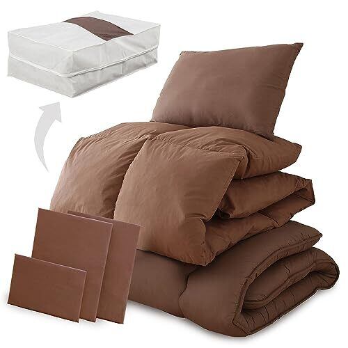 アイリスプラザ ふわふわ羽根布団7点セット セミダブル 身体にフィットするキルト構造 軽量&ボリューム掛け布団 しっかり寝心地 3層構造敷き布団 各カバー付き ブラウン