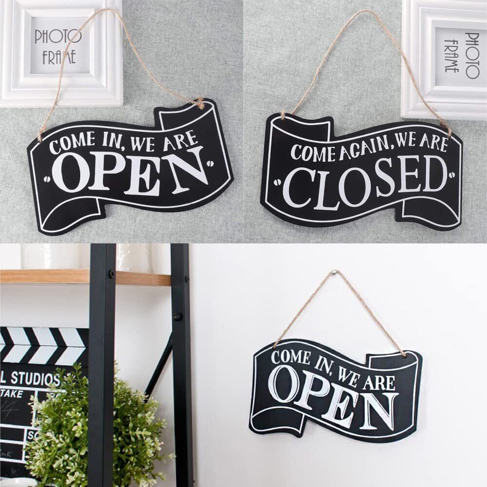 BTtime オープン クローズ open close プレート 木製 両面看板ボード サインプレート インテリア ひも付き リバーシブル オシャレ お店/カフェ/レストラン/雑貨屋用 (ホワイト)