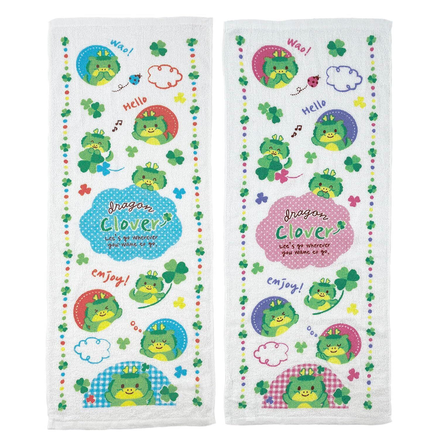 シンプルフレッシュ(Simple Fresh) 2024年 干支 辰年 フェイスタオル 【ドラゴンクローバー】 34×86cm 12枚入(2色×6枚) 白タオル 柄 プリント 龍 新年 業務用 | BASE SHOP