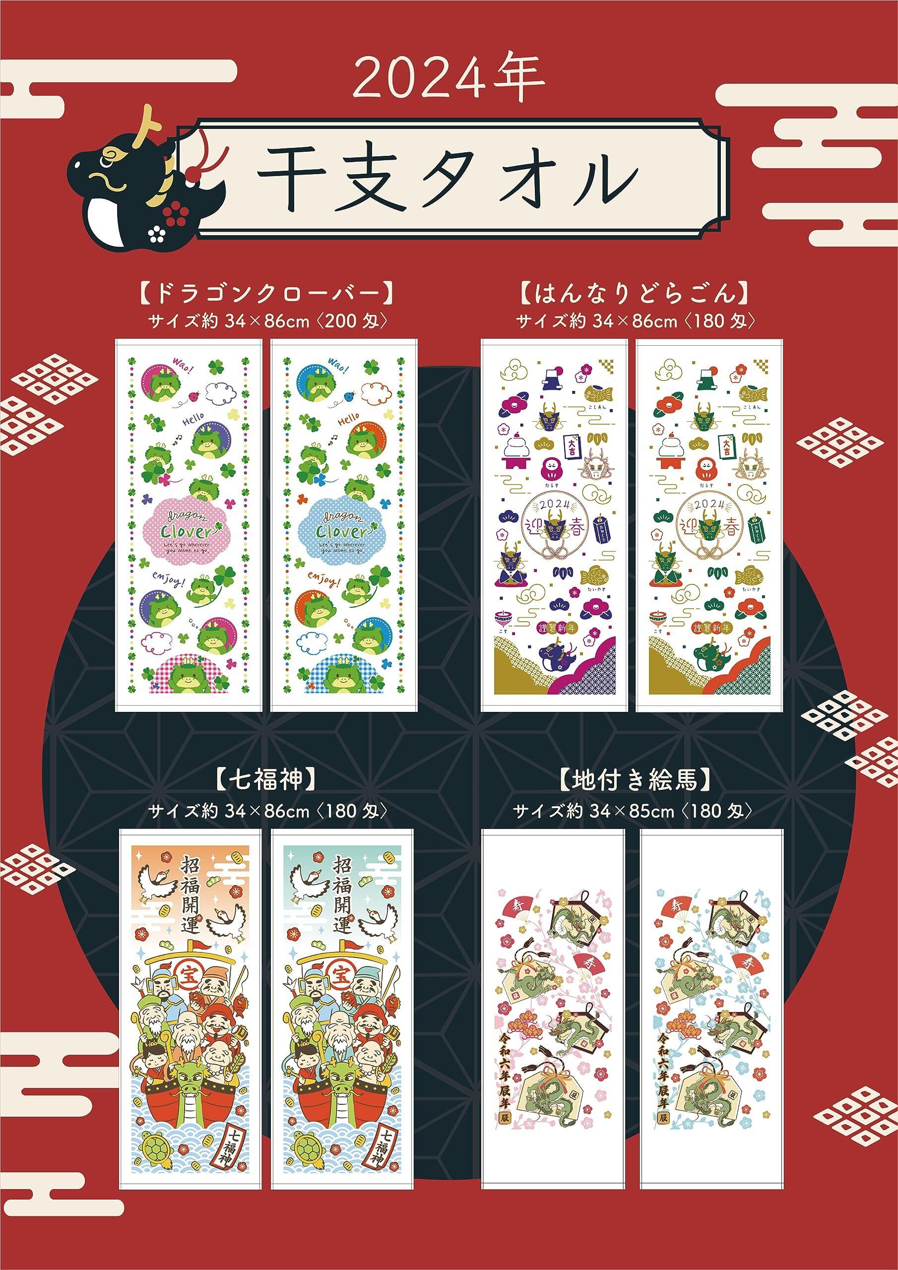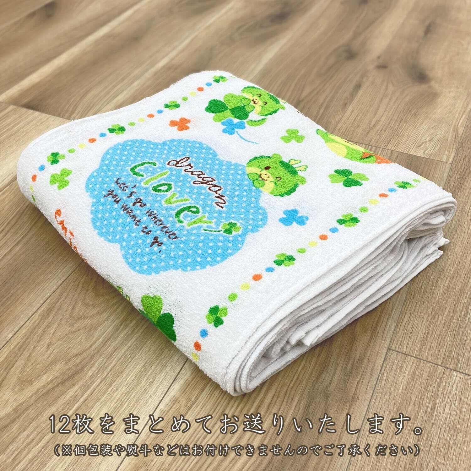 シンプルフレッシュ(Simple Fresh) 2024年 干支 辰年 フェイスタオル 【ドラゴンクローバー】 34×86cm 12枚入(2色×6枚) 白タオル 柄 プリント 龍 新年 業務用