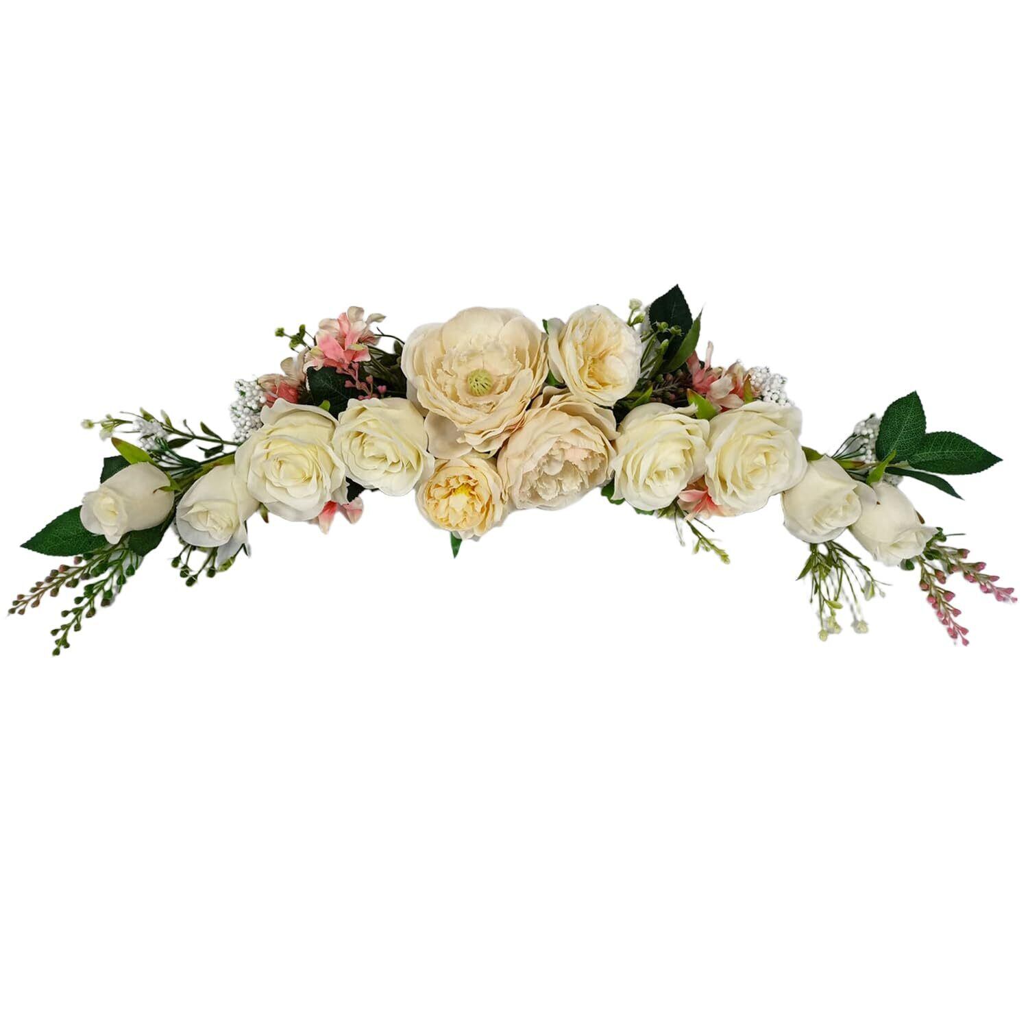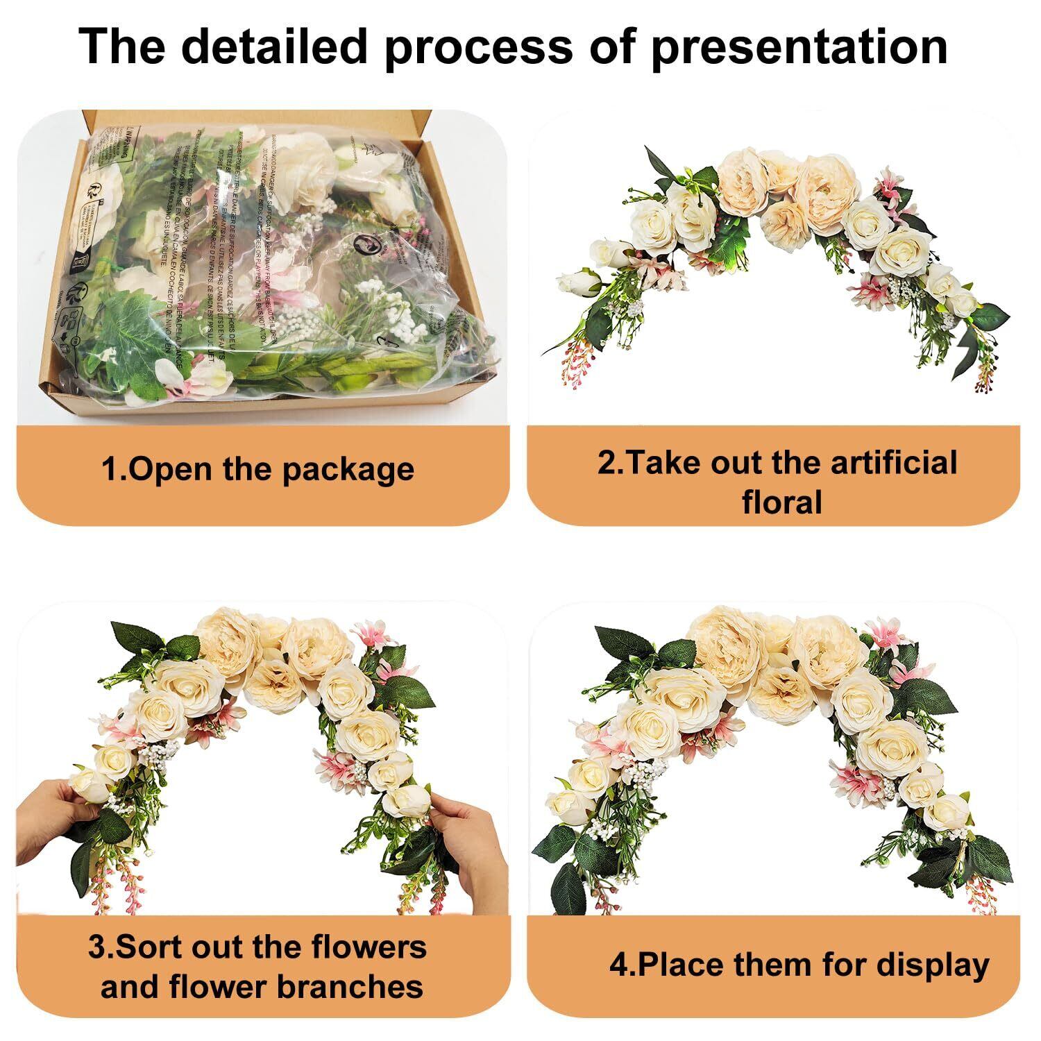1パックの美しい結婚式のアーチの花、シャンパンピオニー、アイボリーのバラと緑の葉、長さ63cmのスワッグと
