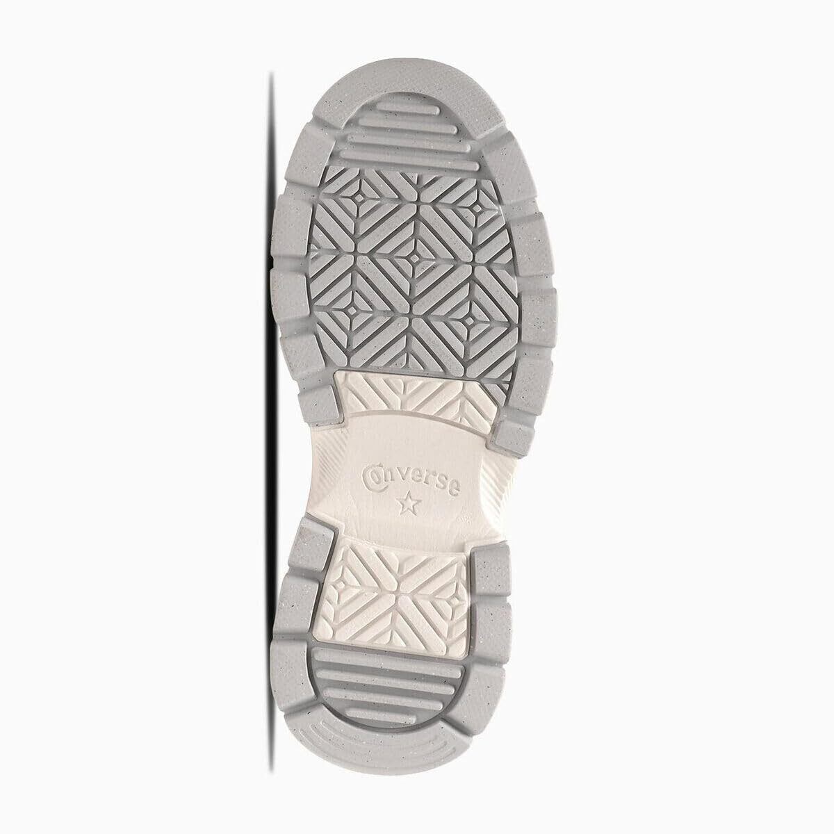 オールスターとトレッキングシューズをモチーフにしたボリュームのあるアウトソールを合体したデザイン。ニュアンスカラーのアッパーをベースに、ラインを同色にしたテープ、シャンパンゴールドのハトメ、ニュアンスグレイの アウトソール、スエードのアンクルパッチ等のディテールを採用することで上品なボリュームスニーカーに仕上げたデザイン。厚みのあるE.V.A.ミッドソールや防滑性を意識した意匠のアウトソールによりクッション性と防滑性を向上。
