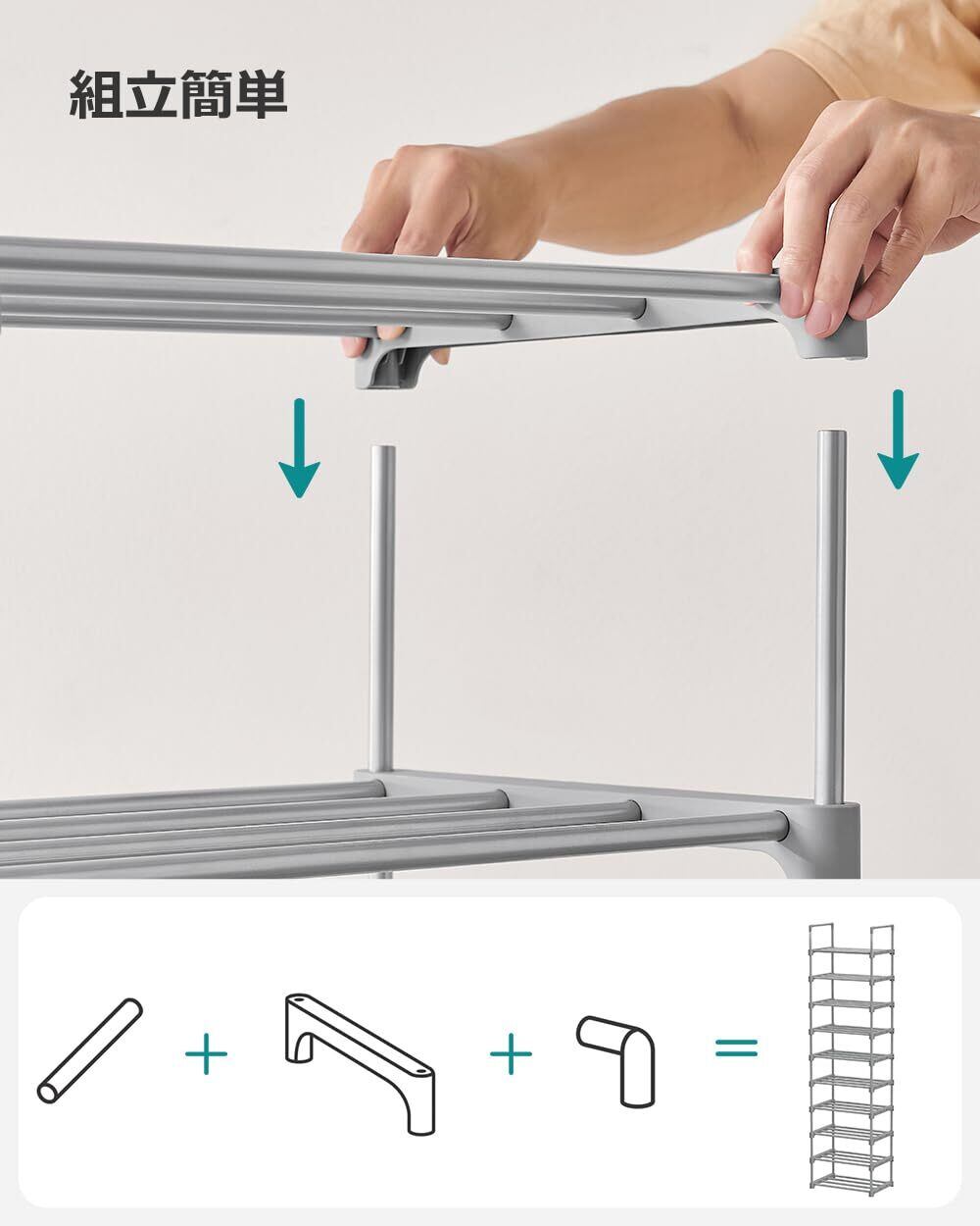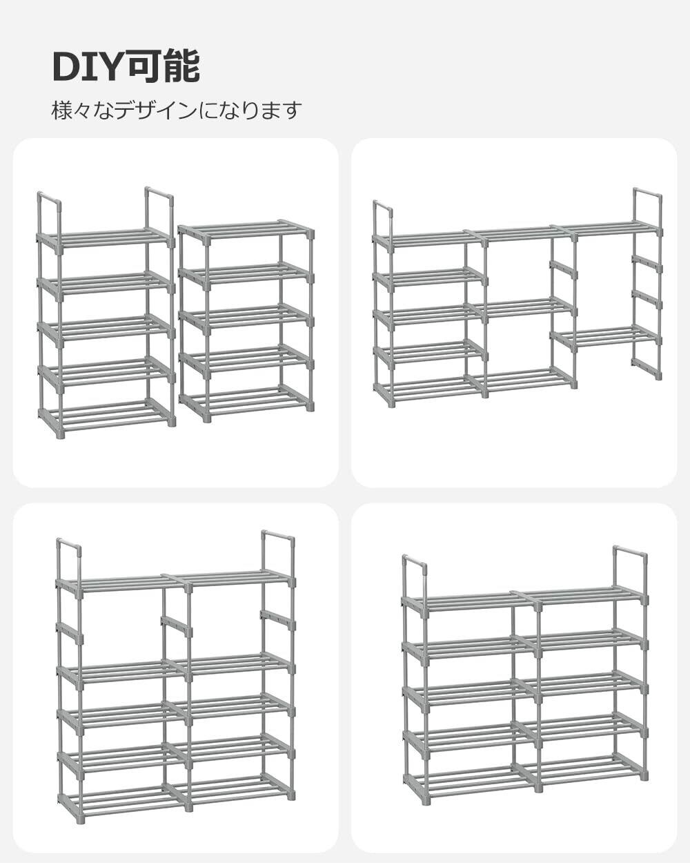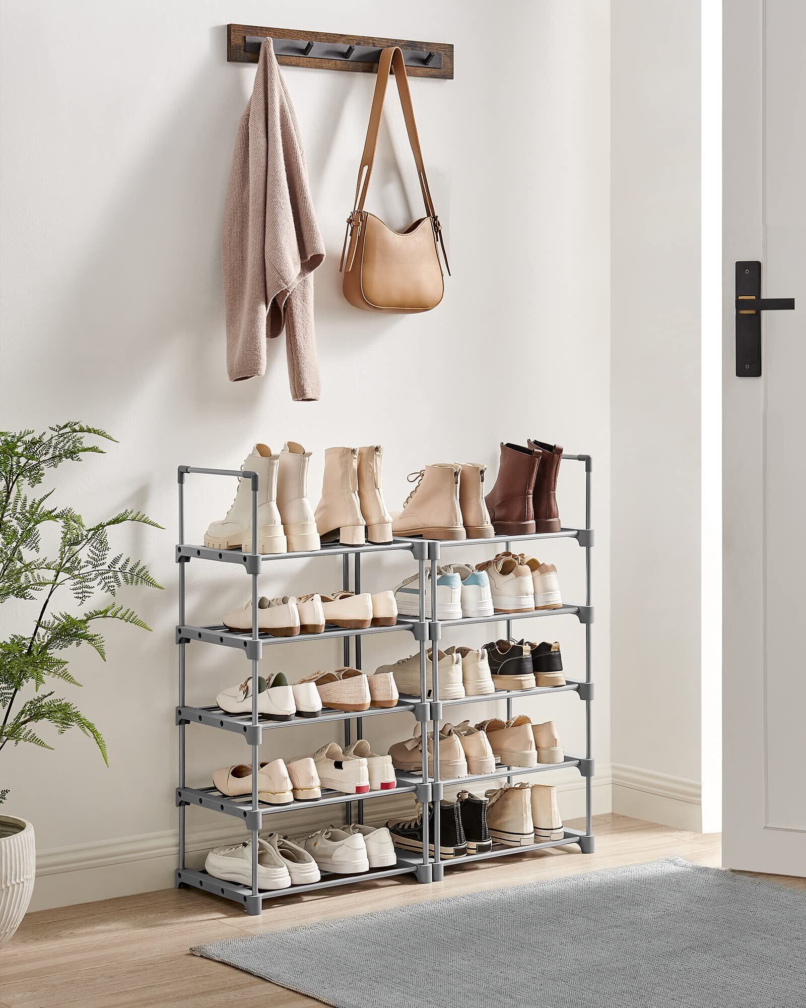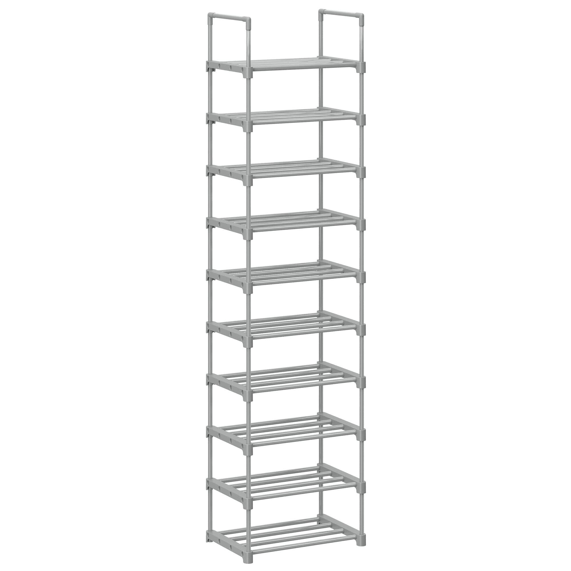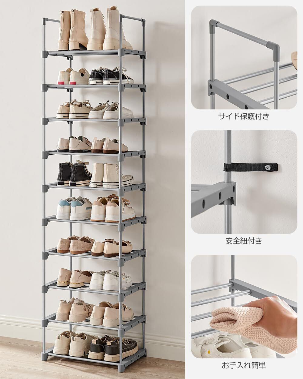 SONGMICS シューズラック スリム 大容量 10段 収納 靴箱 省スペース DIY可能 玄関 すっきり グレー LSA025G02