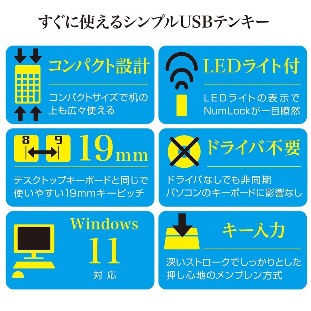 ドライバ(ソフトウェア)インストール不要。挿してそのまま使えるUSB テンキー。