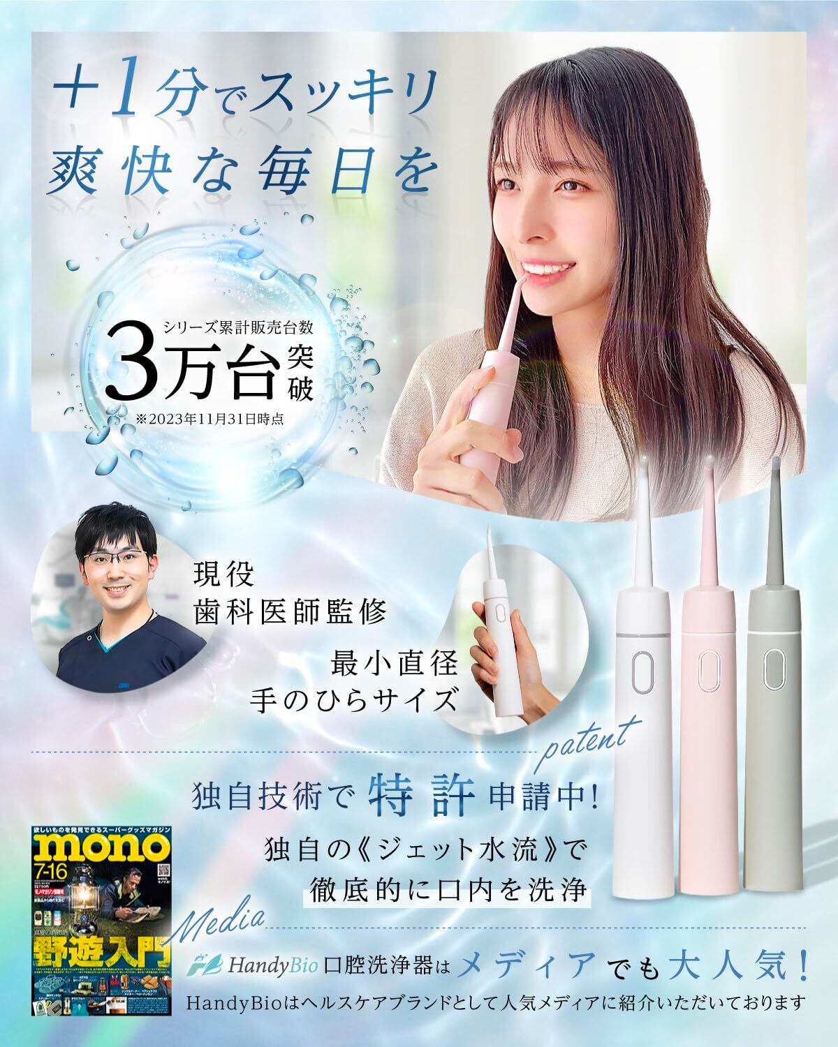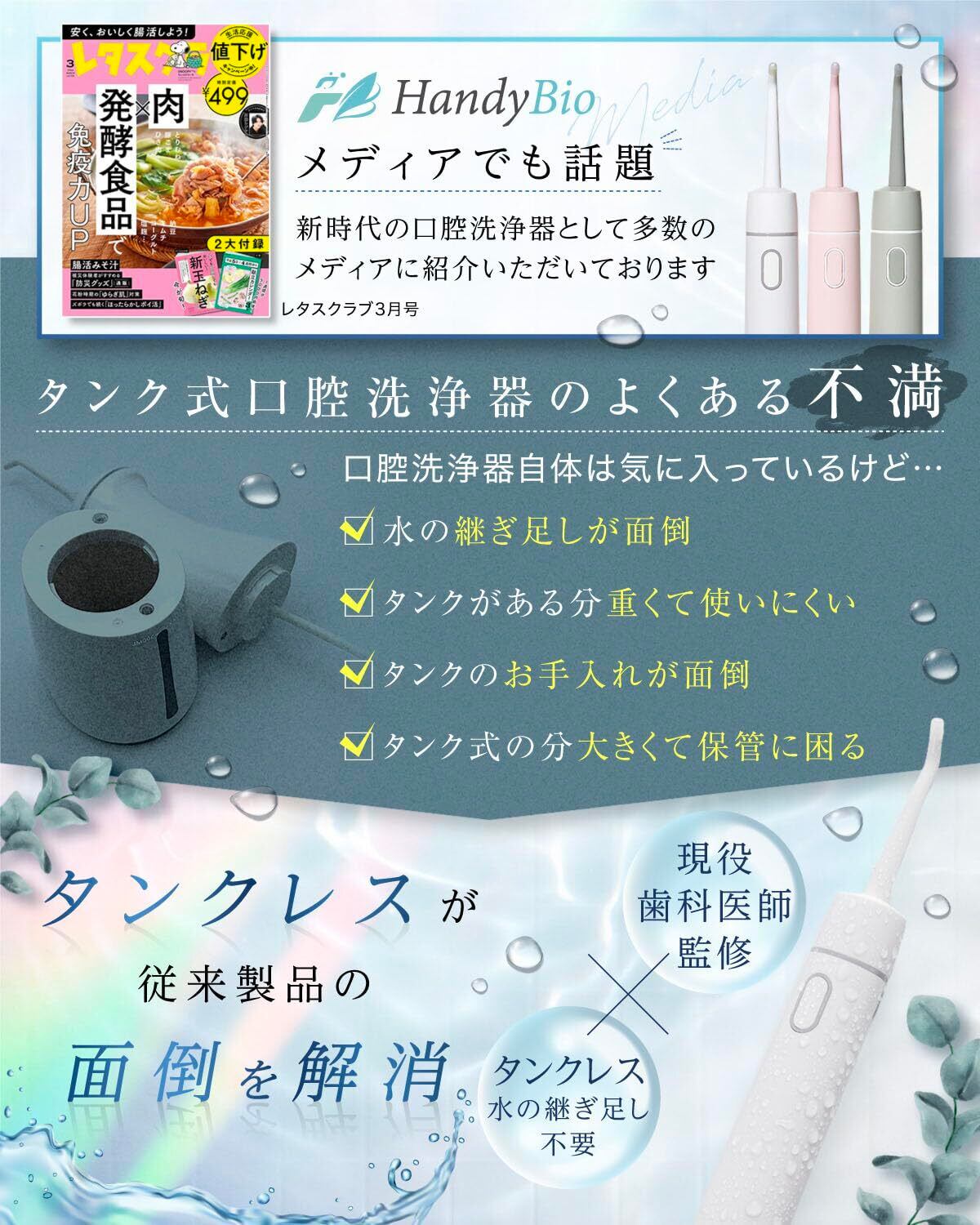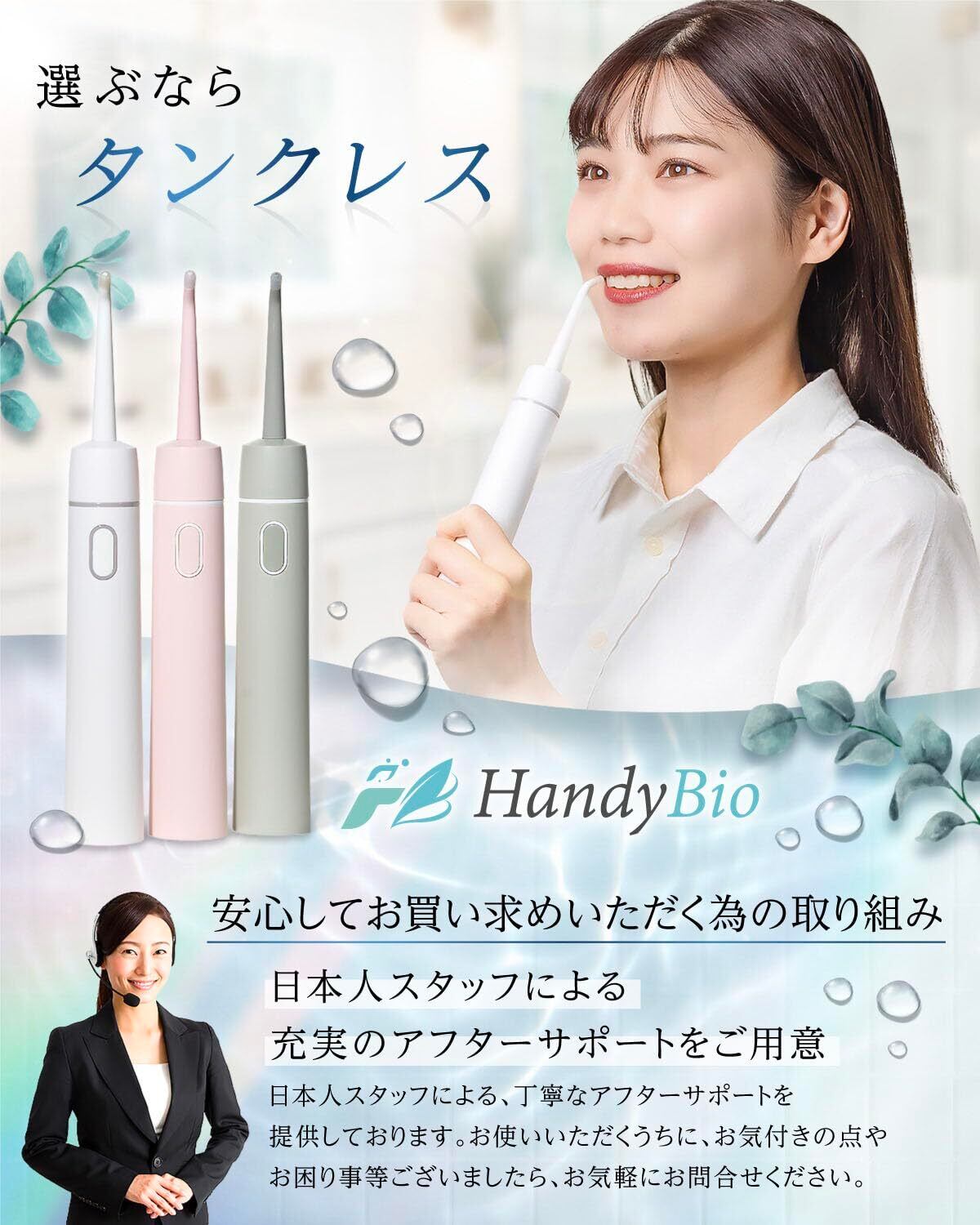 【給水不要のタンクレス】 ジェットウォッシャー 口腔洗浄器 歯 コンパクト 口内洗浄器 口腔洗浄機 歯間 第3世代 HandyBio (グレー, 本体)